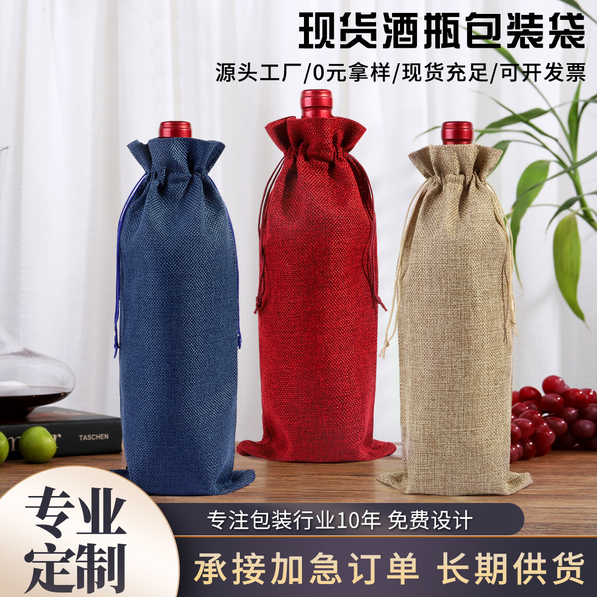 Трансграничные эксклюзивные льняные вина мешок костюм шампанского вина мешок упаковки постельное вино бутылка мешок упаковки мешок оптом