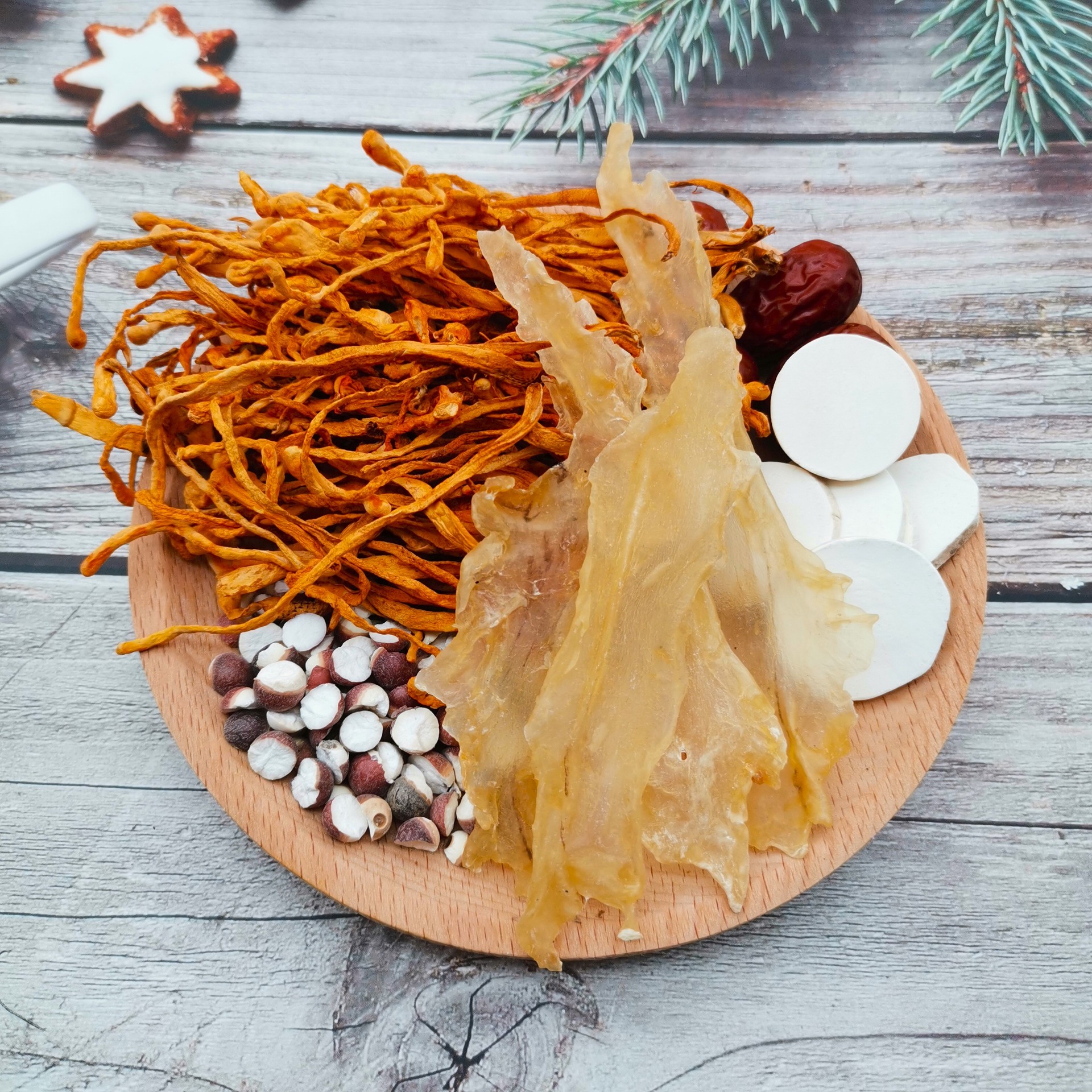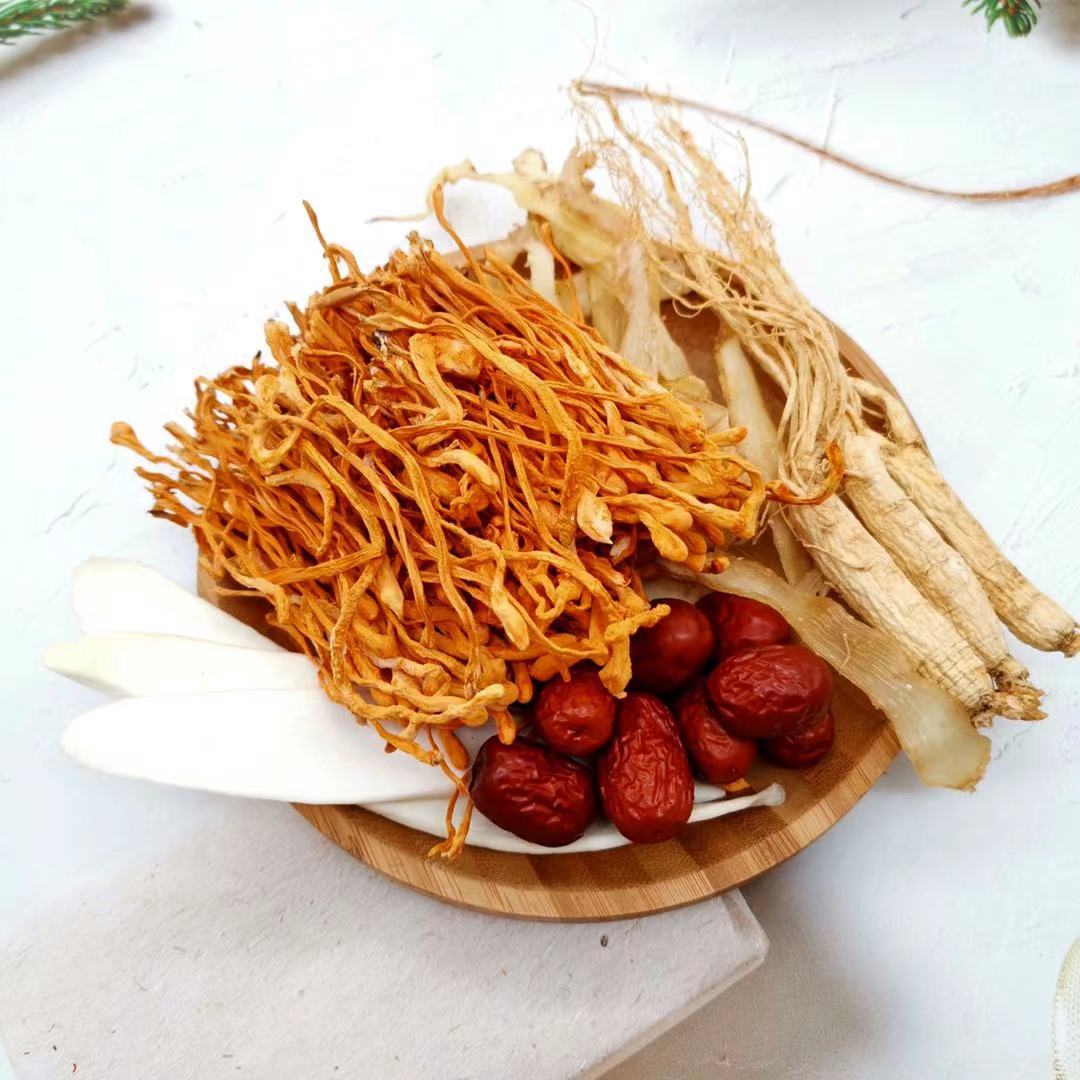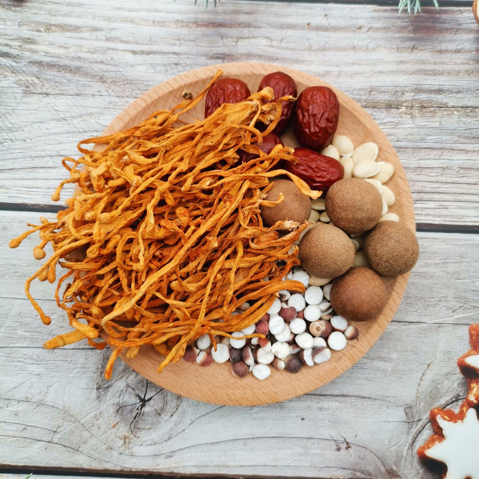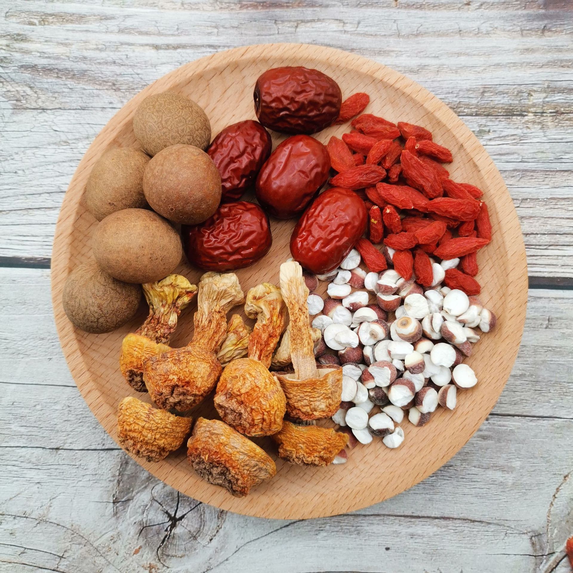 Женьшень, ягоды лисичника, американский женьшень, цветки кордицепса, персик пятипалый, гастродия элаты, офипогон японский, лонган, грибы чайного дерева, бамбуковый гриб, суп Си Шен, дендробиум, ганодерма яркая, морское дно кокоса,