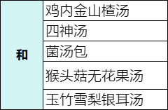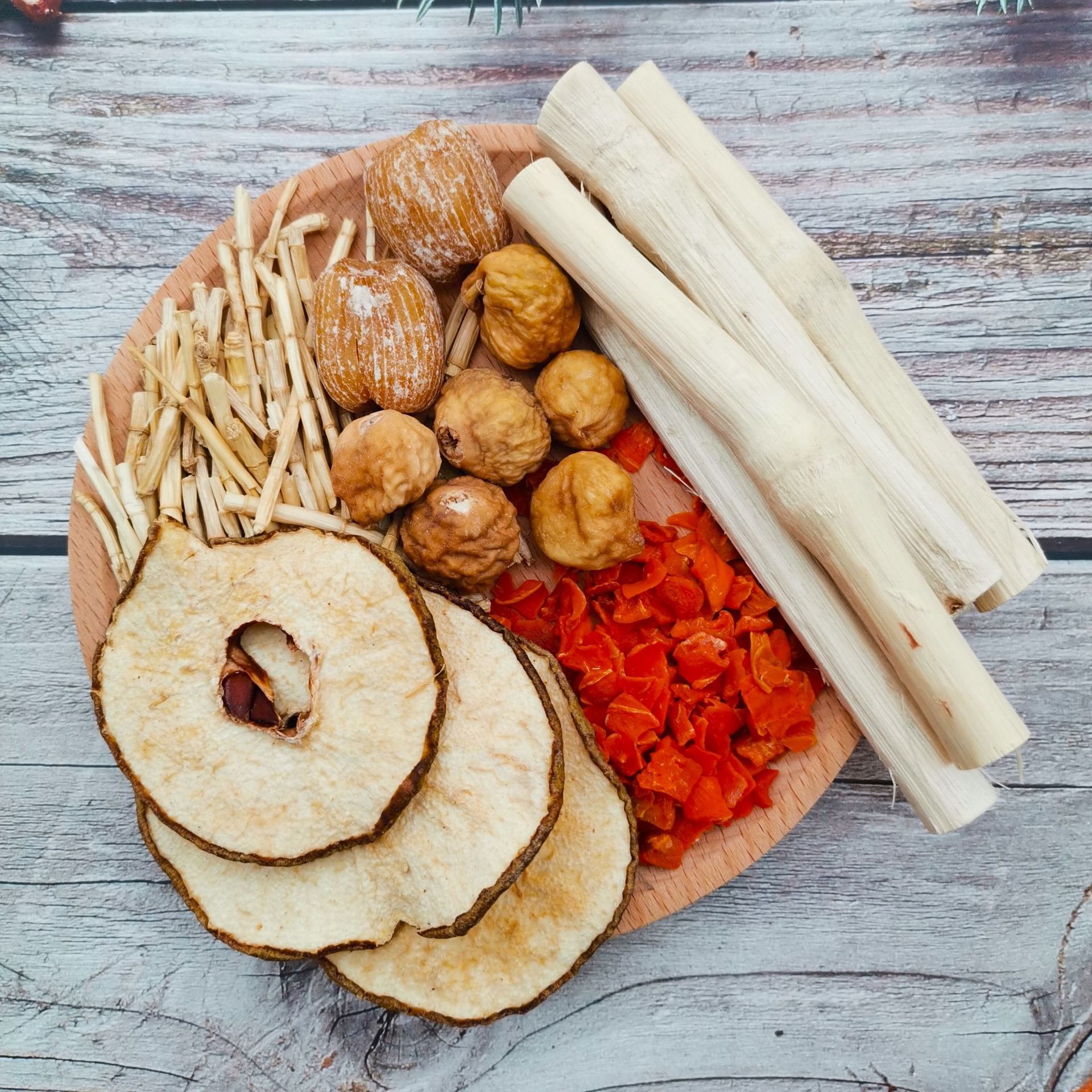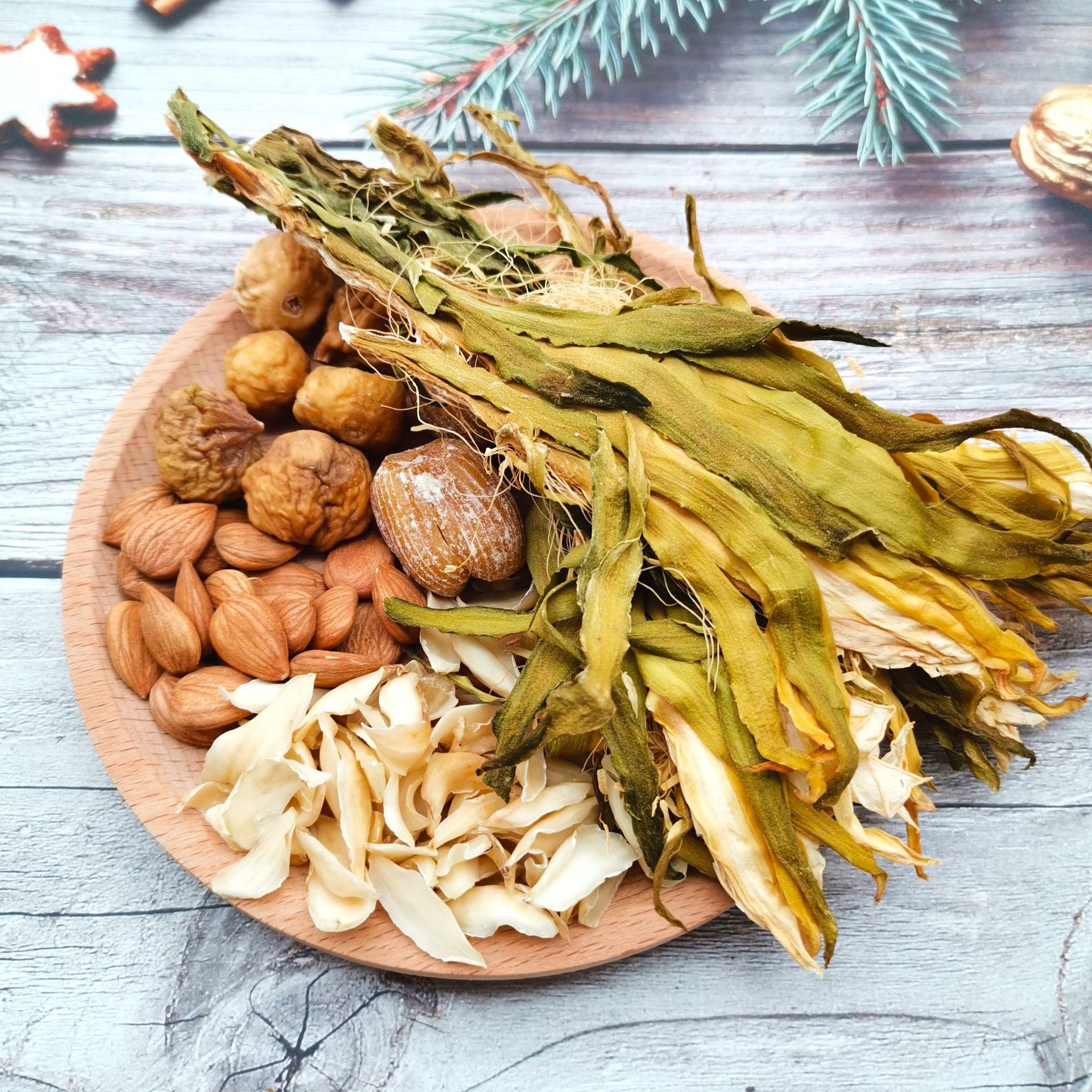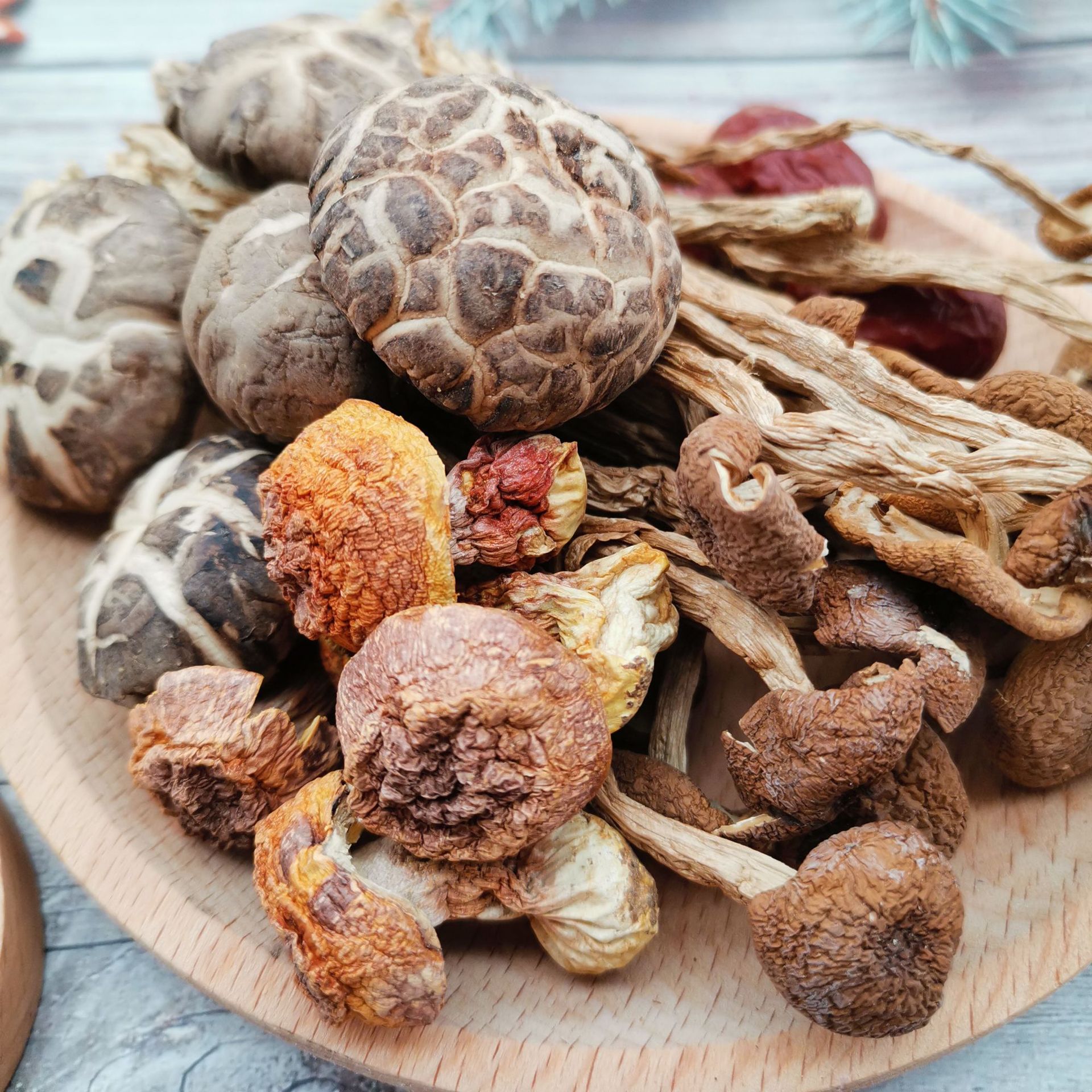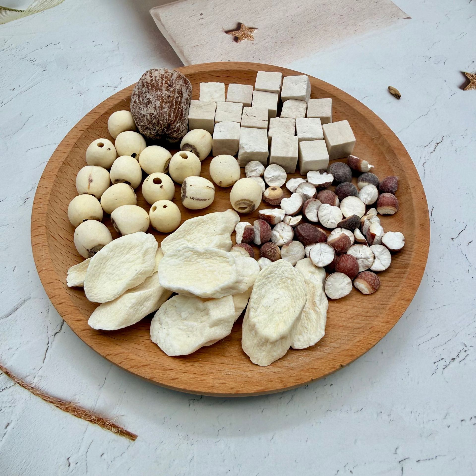 Женьшень, ягоды лисичника, американский женьшень, цветки кордицепса, персик пятипалый, гастродия элаты, офипогон японский, лонган, грибы чайного дерева, бамбуковый гриб, суп Си Шен, дендробиум, ганодерма яркая, морское дно кокоса,