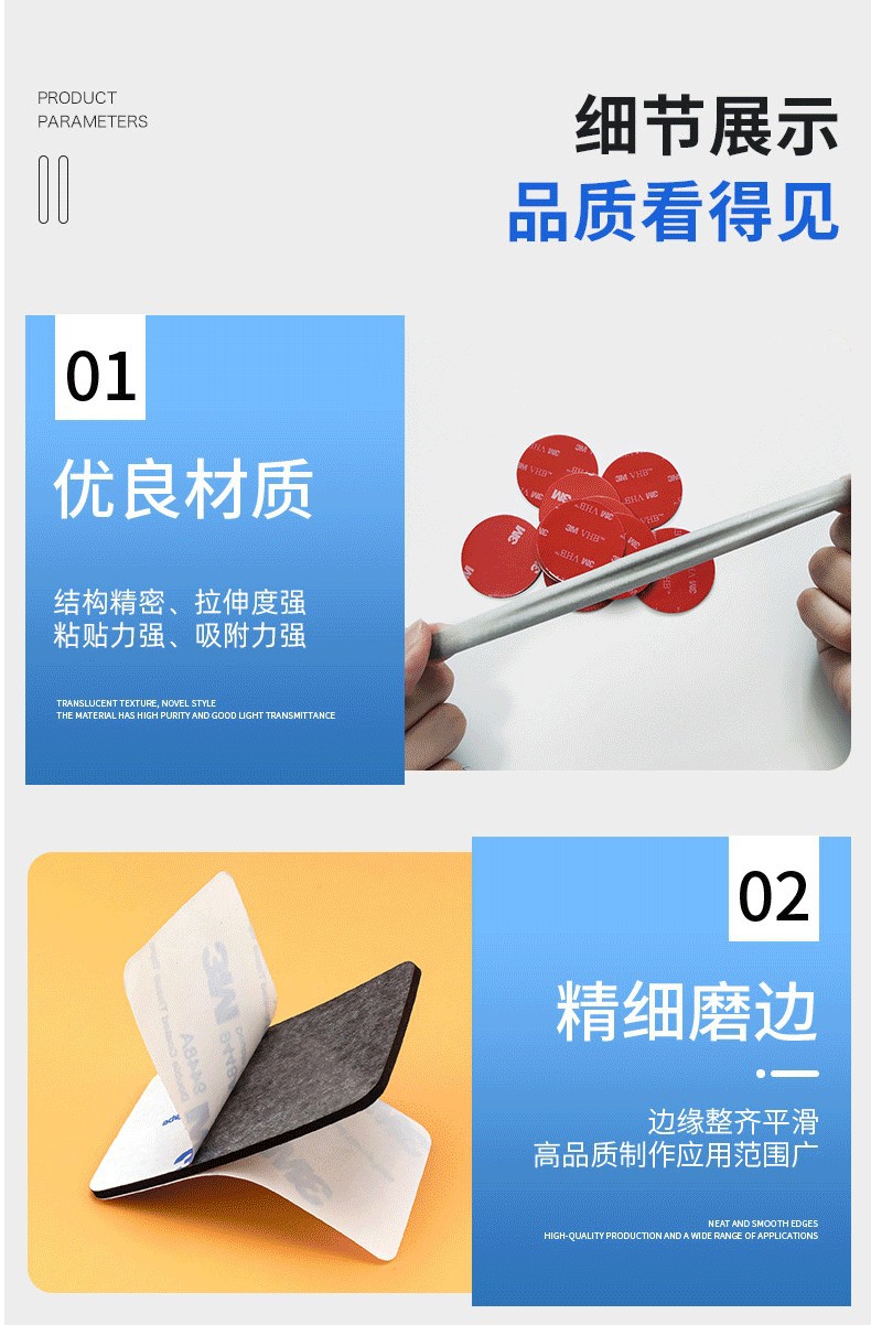 Двусторонний клей 3M, прозрачный, высокопрочный, без следов, из пеноматериала, утолщенный, на основе ЭВА, круглый, с клеевой основой 3M