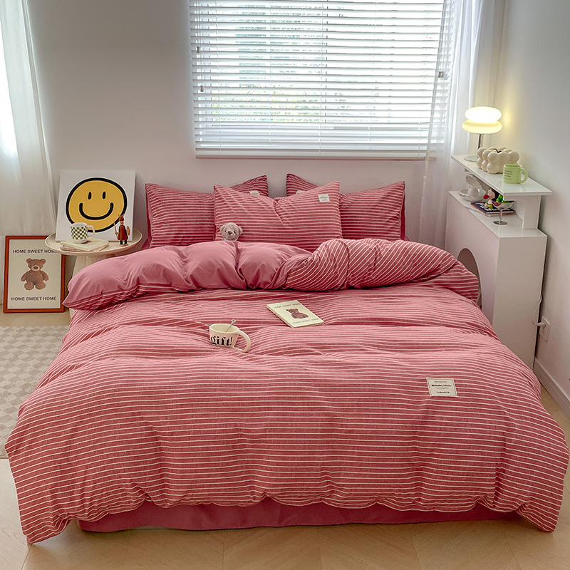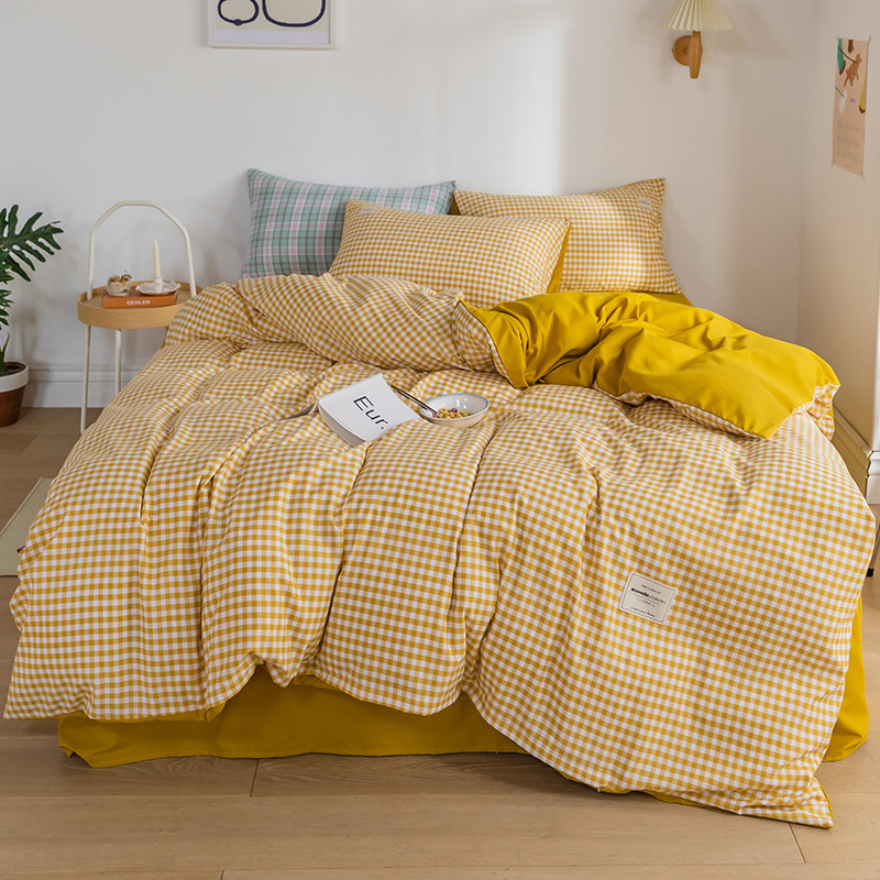 Прямые поставки с фабрики в клетку из четырех частей, приятные для кожи, модные простые простыни, постельное белье, трансграничная Внешняя торговля, оптовое поколение