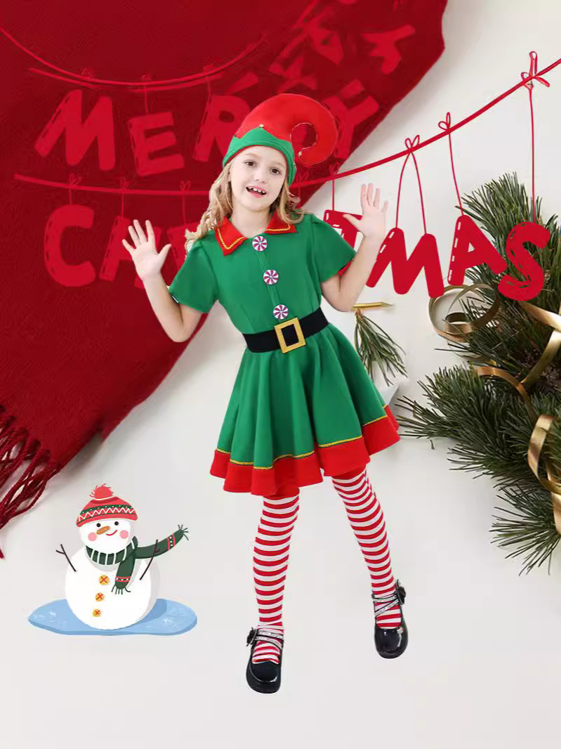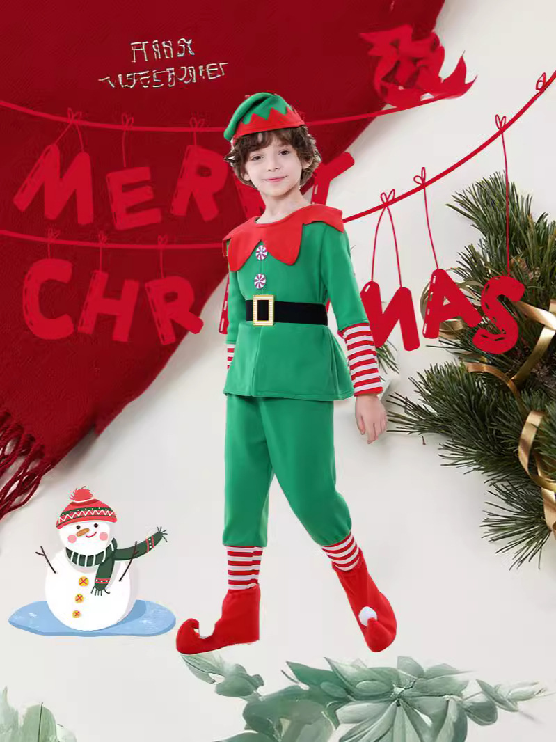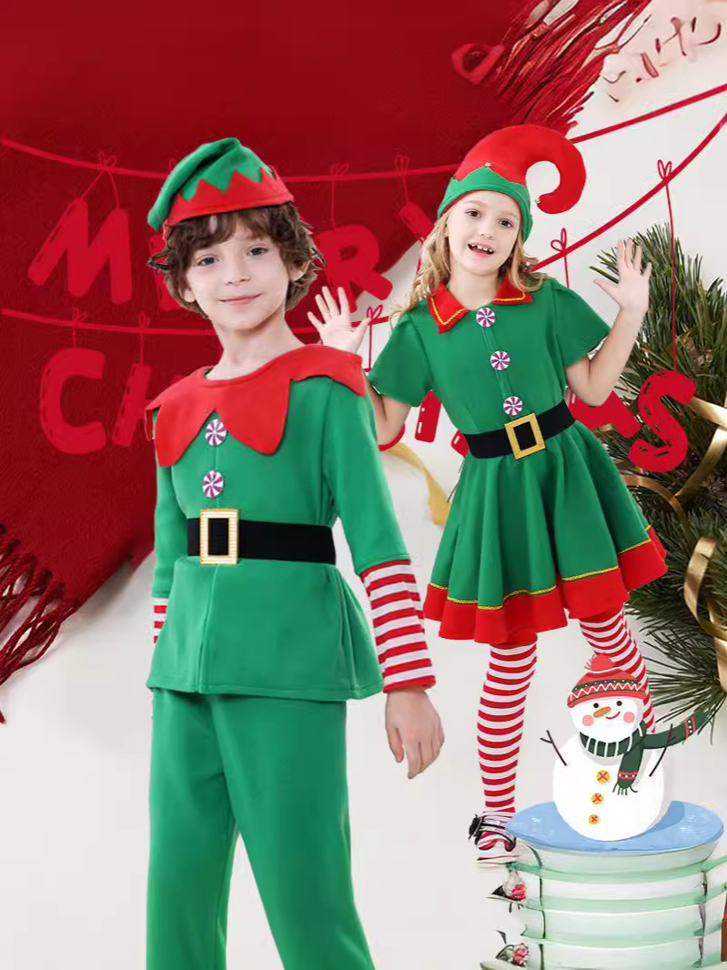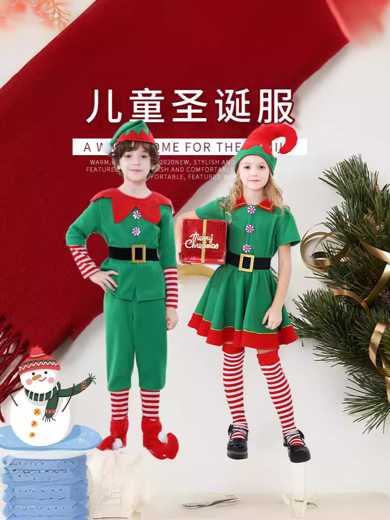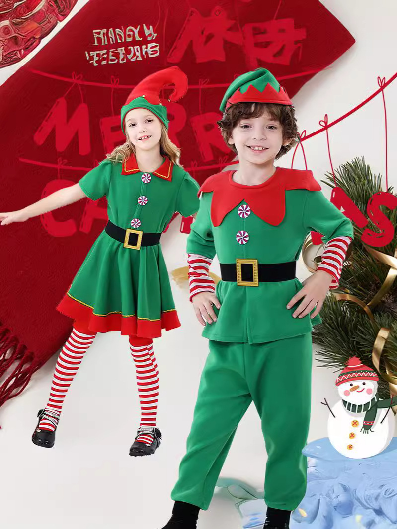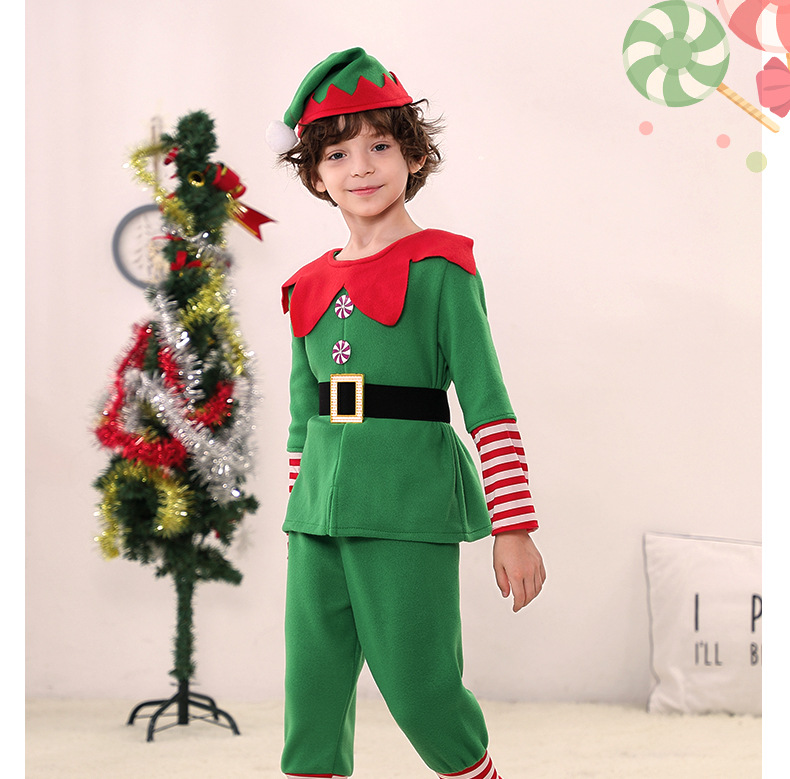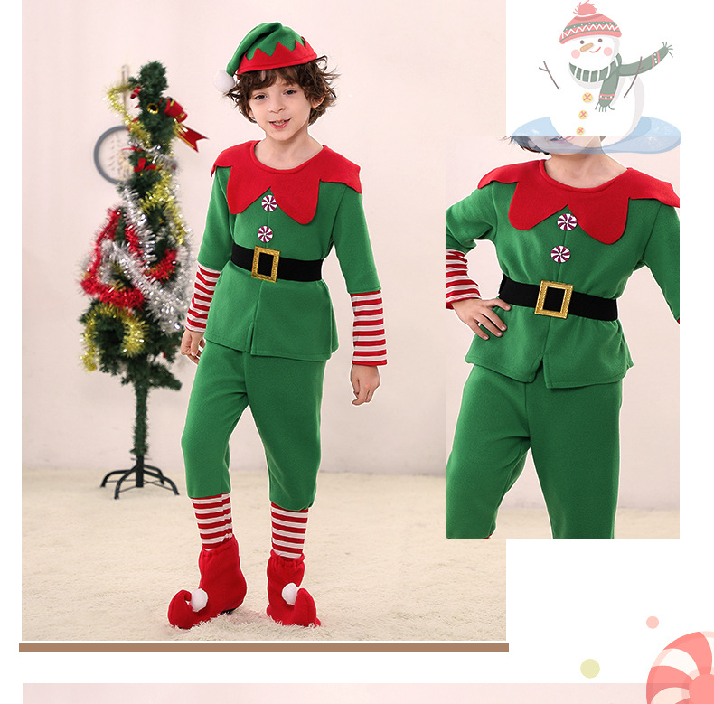 Рождественский костюм Детский Рождественский костюм эльфа, косплей, нарядное платье для родителей и детей, мужской и женский зеленый Рождественский Костюм