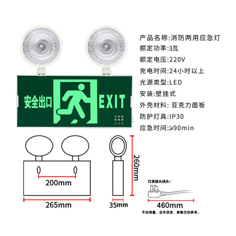 Светодиодный двухголовый пожарный аварийный свет, заряжаемый с питанием, коридор, безопасный выход, настенный индикатор аварийного освещения