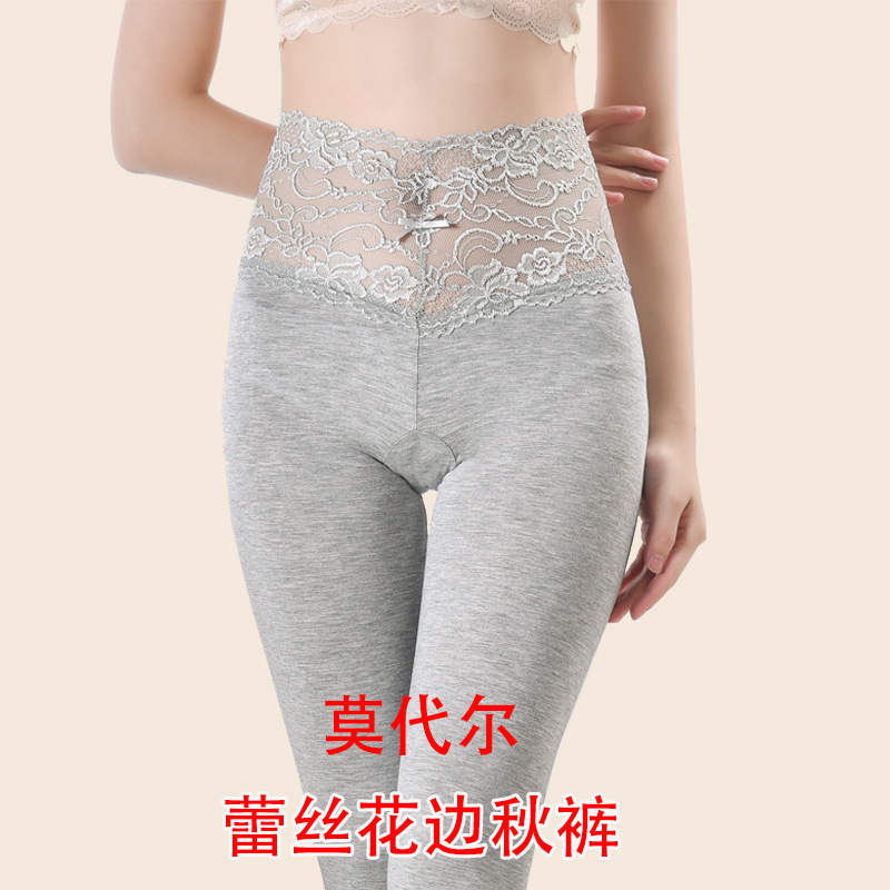 Женские осенние брюки из модала, сексуальные кружевные облегающие леггинсы, цельные, осенне-зимние тонкие эластичные теплые брюки для женщин