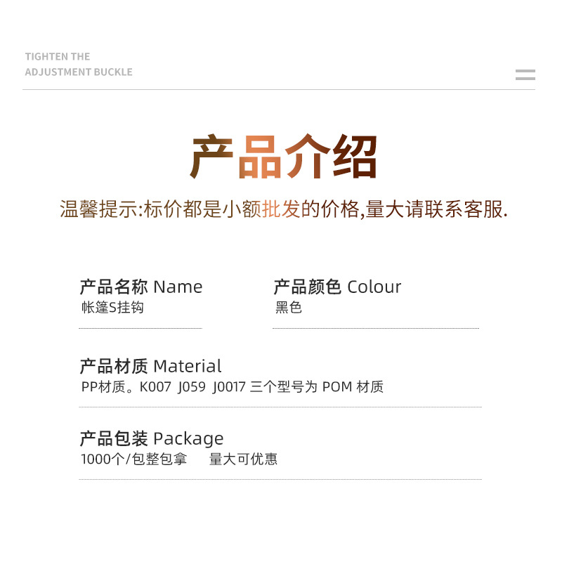 厂家直供户外帐篷S挂钩S形塑料链接勾扣户外挂钩帐篷配件