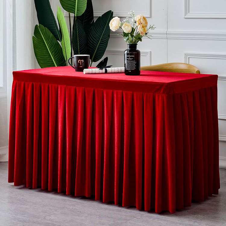 Фабрика прямой сплошной цвет конференции скатерть выставка торжества стол набор золото бархат скатерть стол юбка таблицы юбка