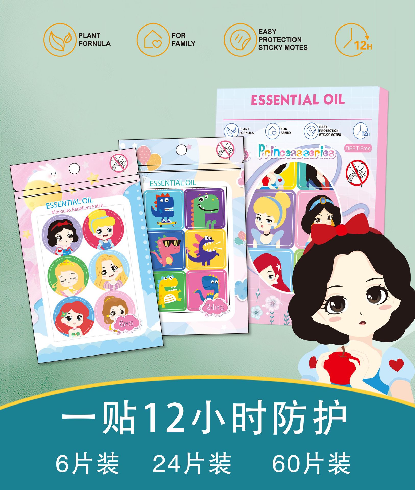 公主恐龙卡通驱蚊贴纸植物精油防蚊贴定制