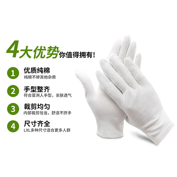 Оптовые белые хлопковые перчатки от производителя, утолщенные рабочие перчатки для защиты труда, перчатки для рукоделия и этикета, белые перчатки