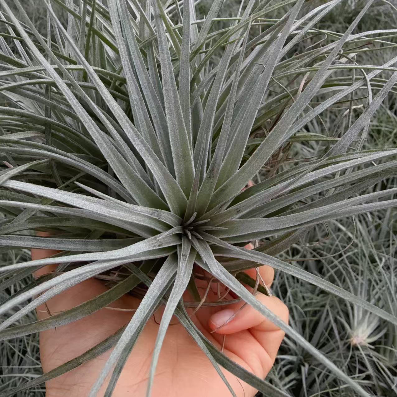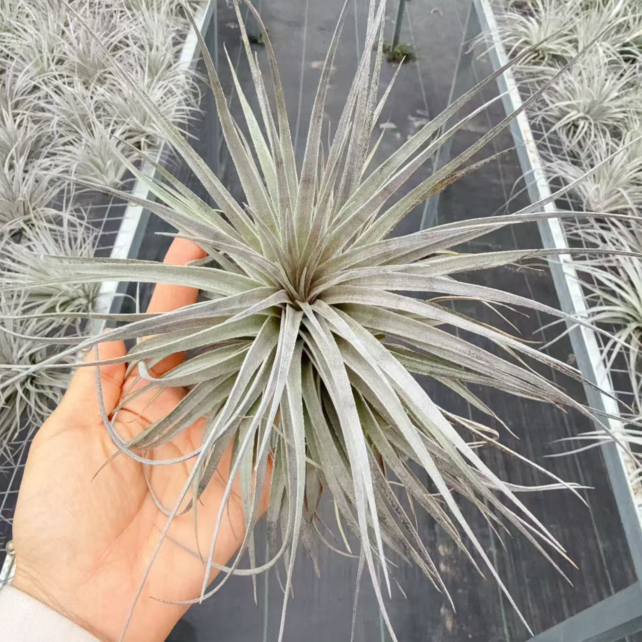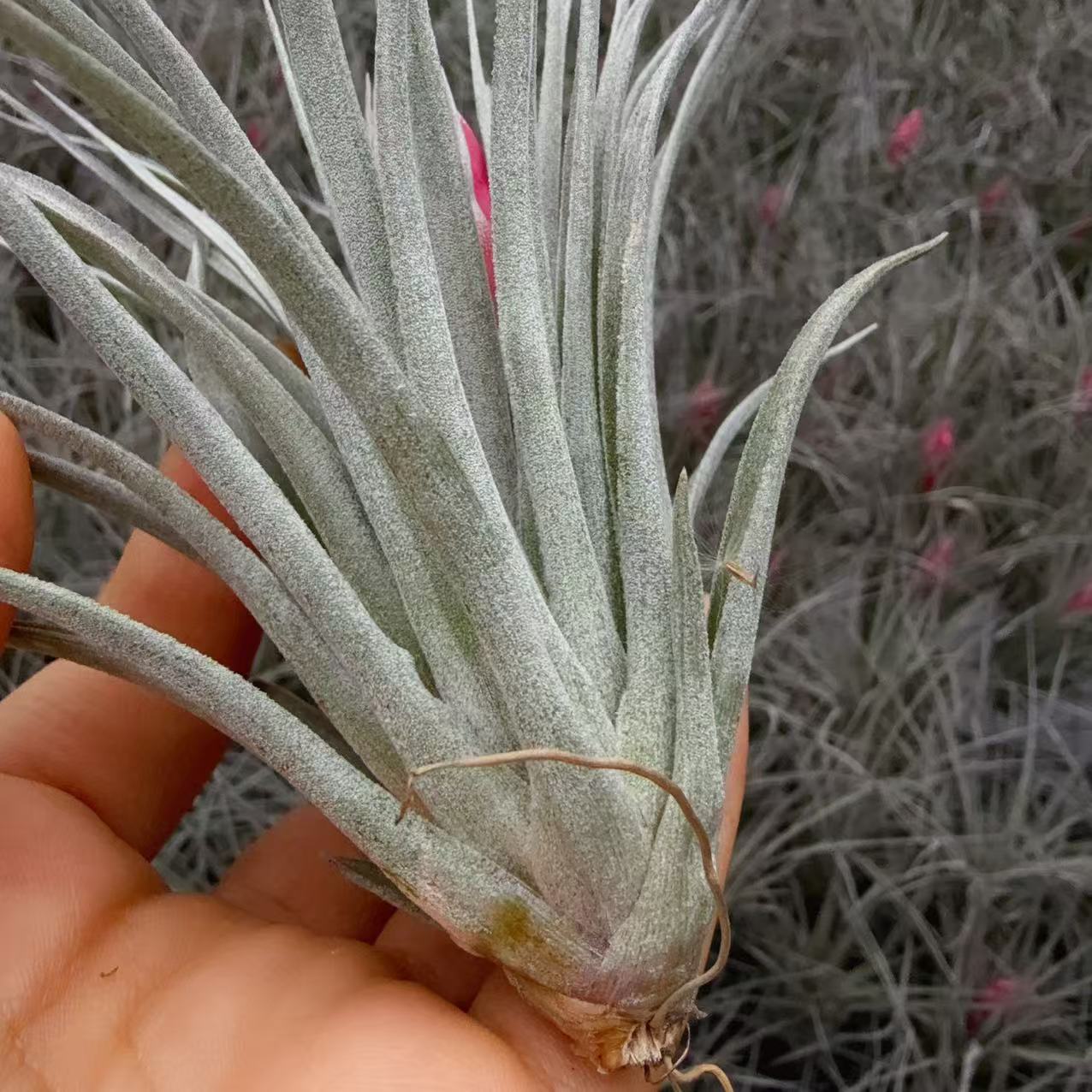 又名修士顿,音译,与棉花糖非常相似,是空气凤梨中少数的美花品种之一,株型舒展,花期呈枚红色花箭,层层开出粉红色花朵,很有观赏性,普货中相当受欢迎的品种。