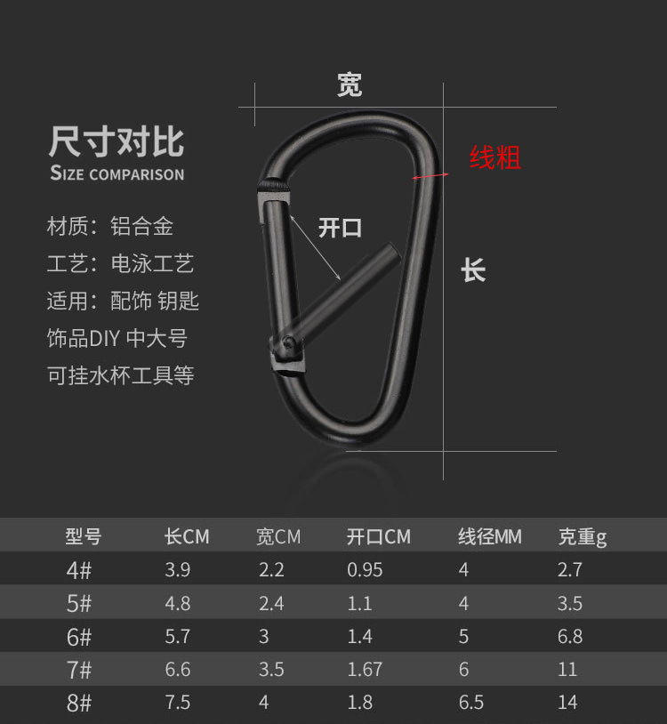 铝合金电泳全黑快挂扣
