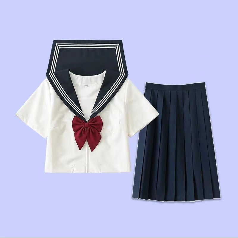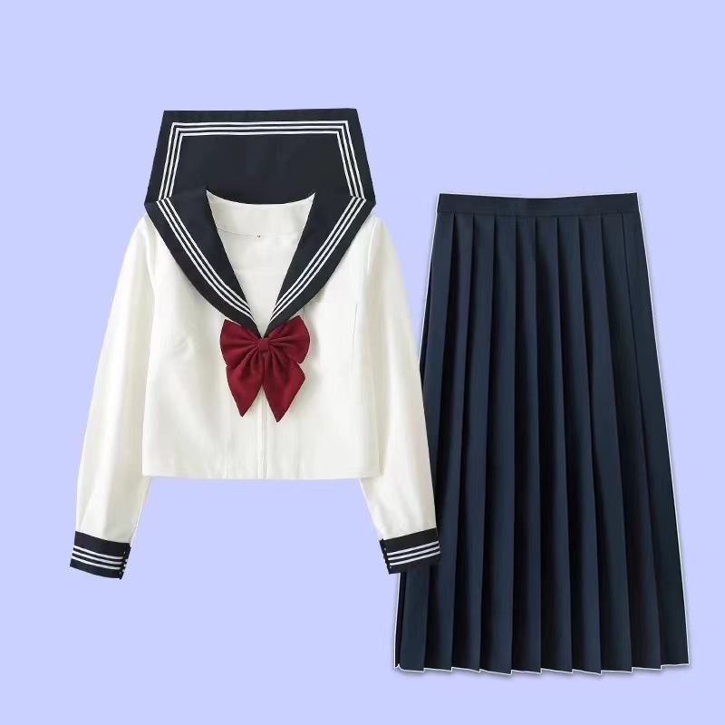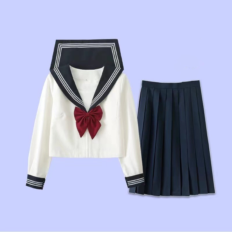 Базовый белый трехкомпонентный костюм в стиле милой школьницы-матроски, японский школьный стиль, синий воротник, белое тело, форма JK, оригинальная классная форма, школьная форма для женщин