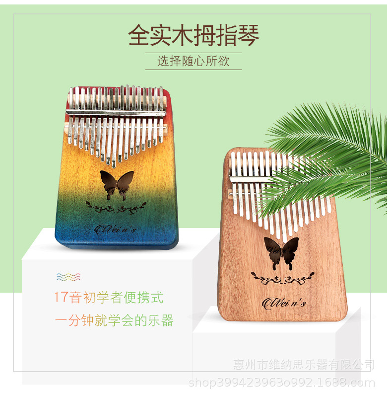 Пальчиковый пианино-инструмент, 17-тоновая калимба, 21-тоновая калимба, инструмент для игры пальцами, из массива дерева, радужная модель