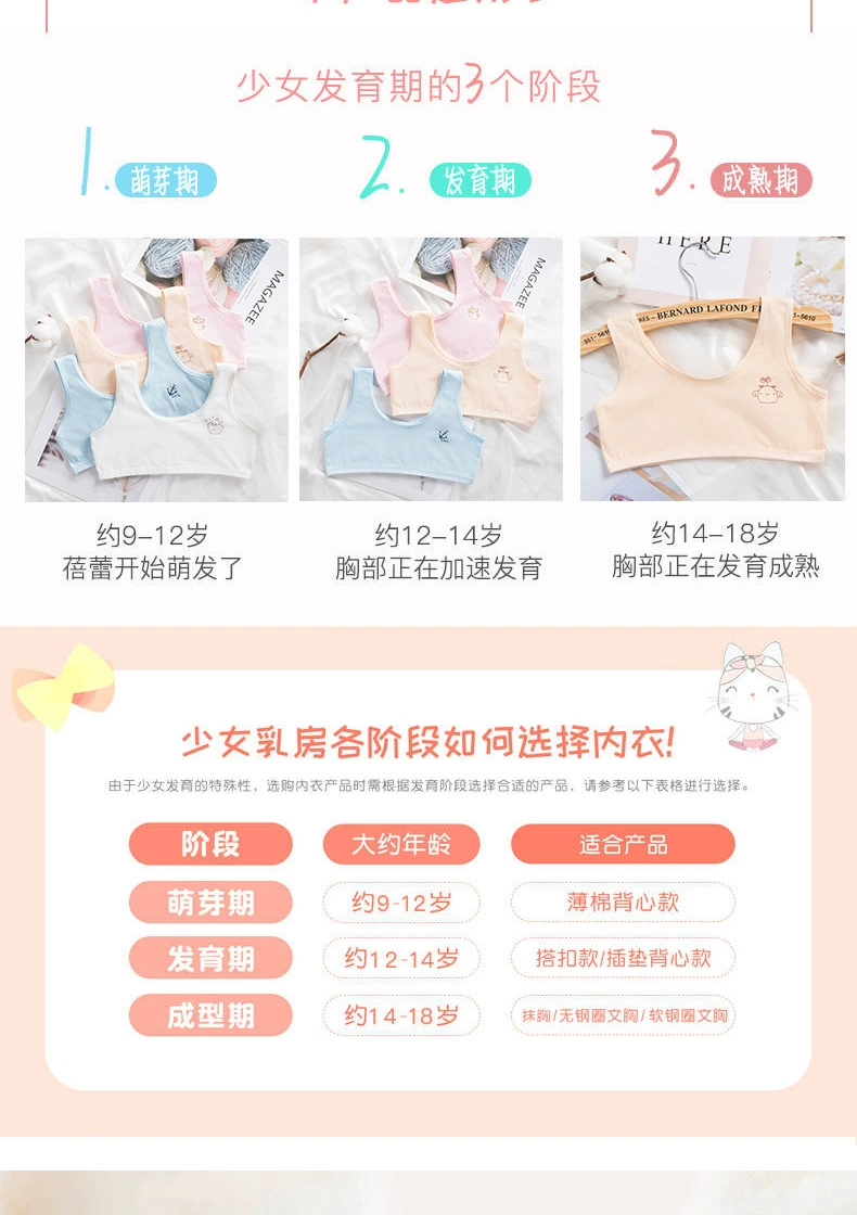 Жилет для девочек, милый удобный период развития, бюстгальтер для девочек, учащиеся младших классов средней школы, дышащие производители студенческого нижнего белья с защитой от ударов