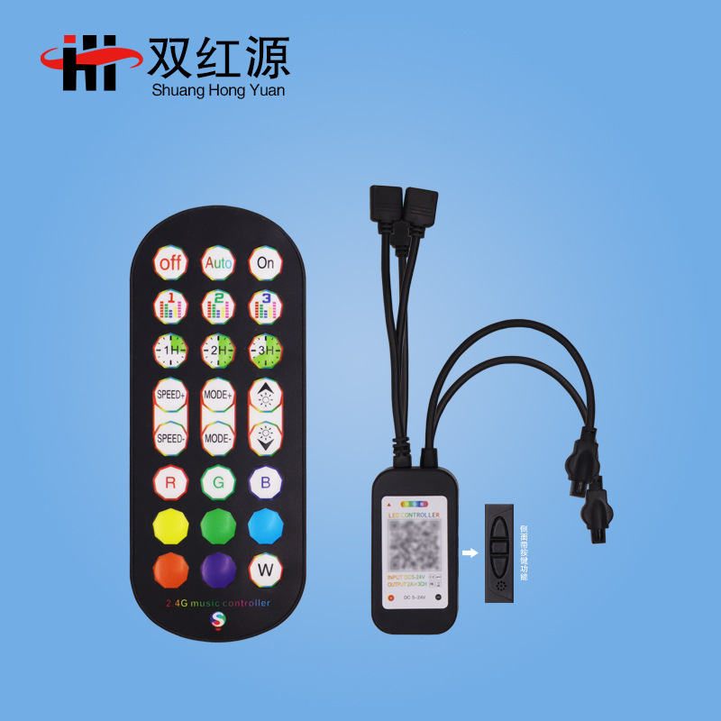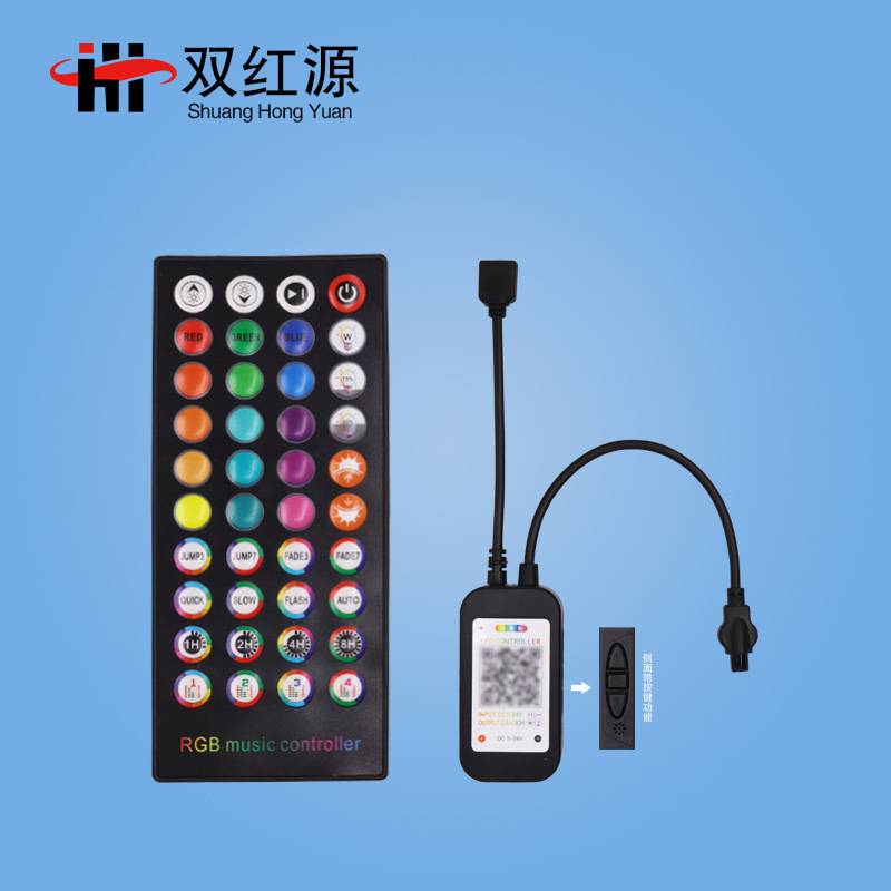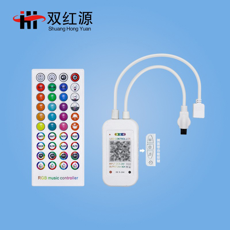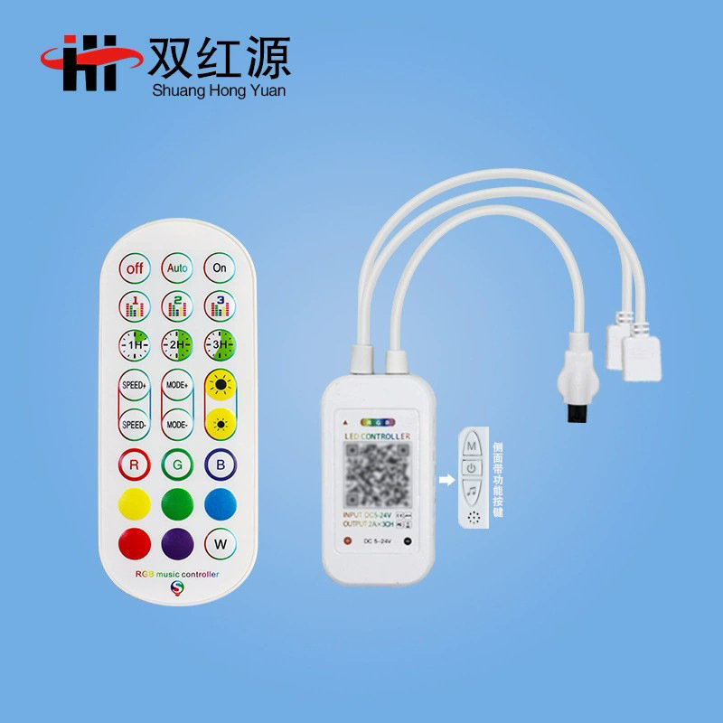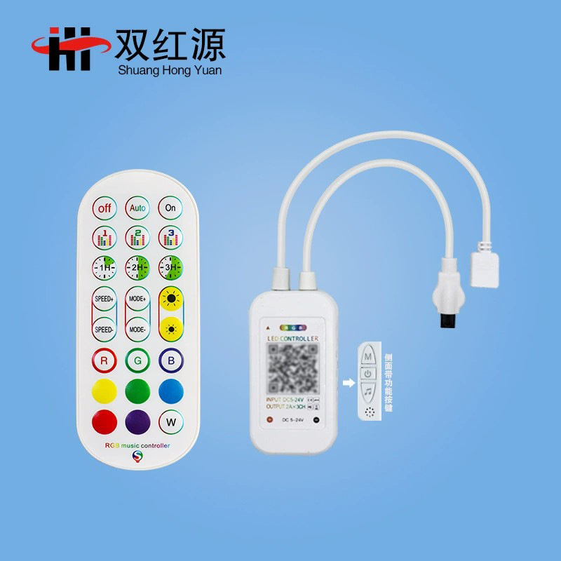 Двойной красный источник 24-клавишный Интеллектуальный музыкальный контроллер Bluetooth, боковой трехкнопочный RGB, красочный контроллер светодиодной ленты с регулируемой яркостью
