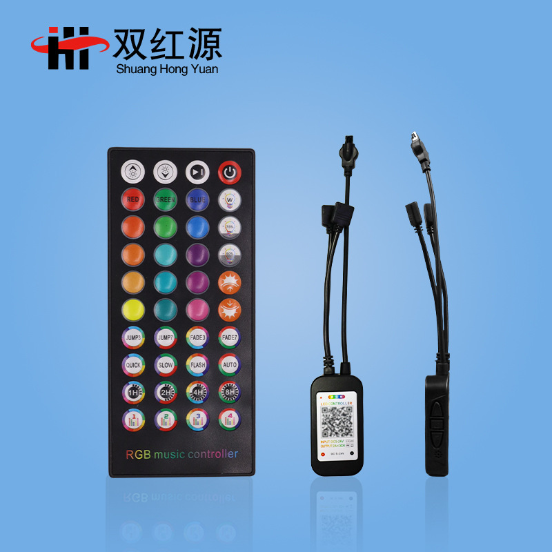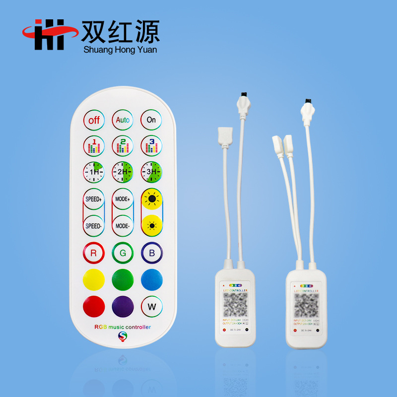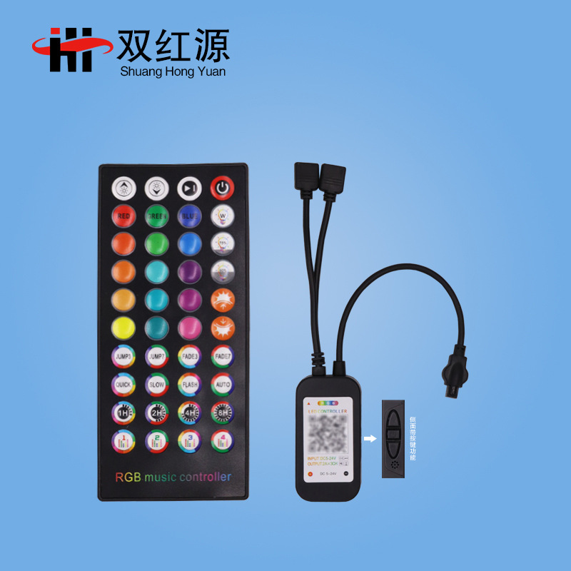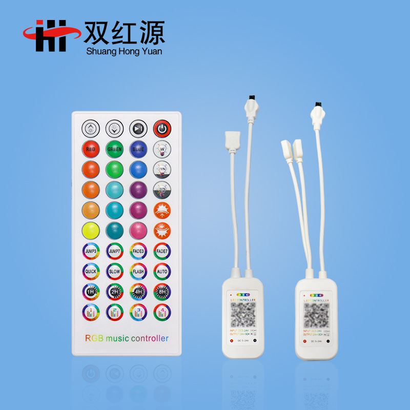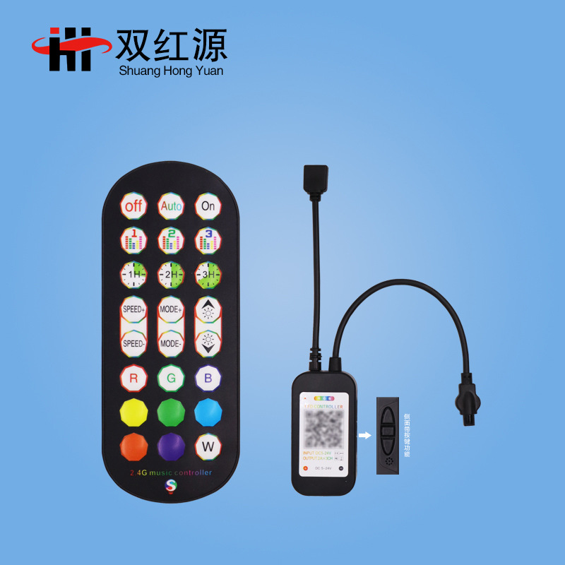Двойной красный источник 24-клавишный Интеллектуальный музыкальный контроллер Bluetooth, боковой трехкнопочный RGB, красочный контроллер светодиодной ленты с регулируемой яркостью