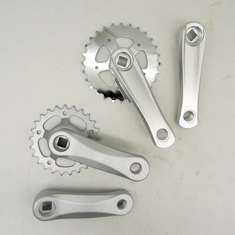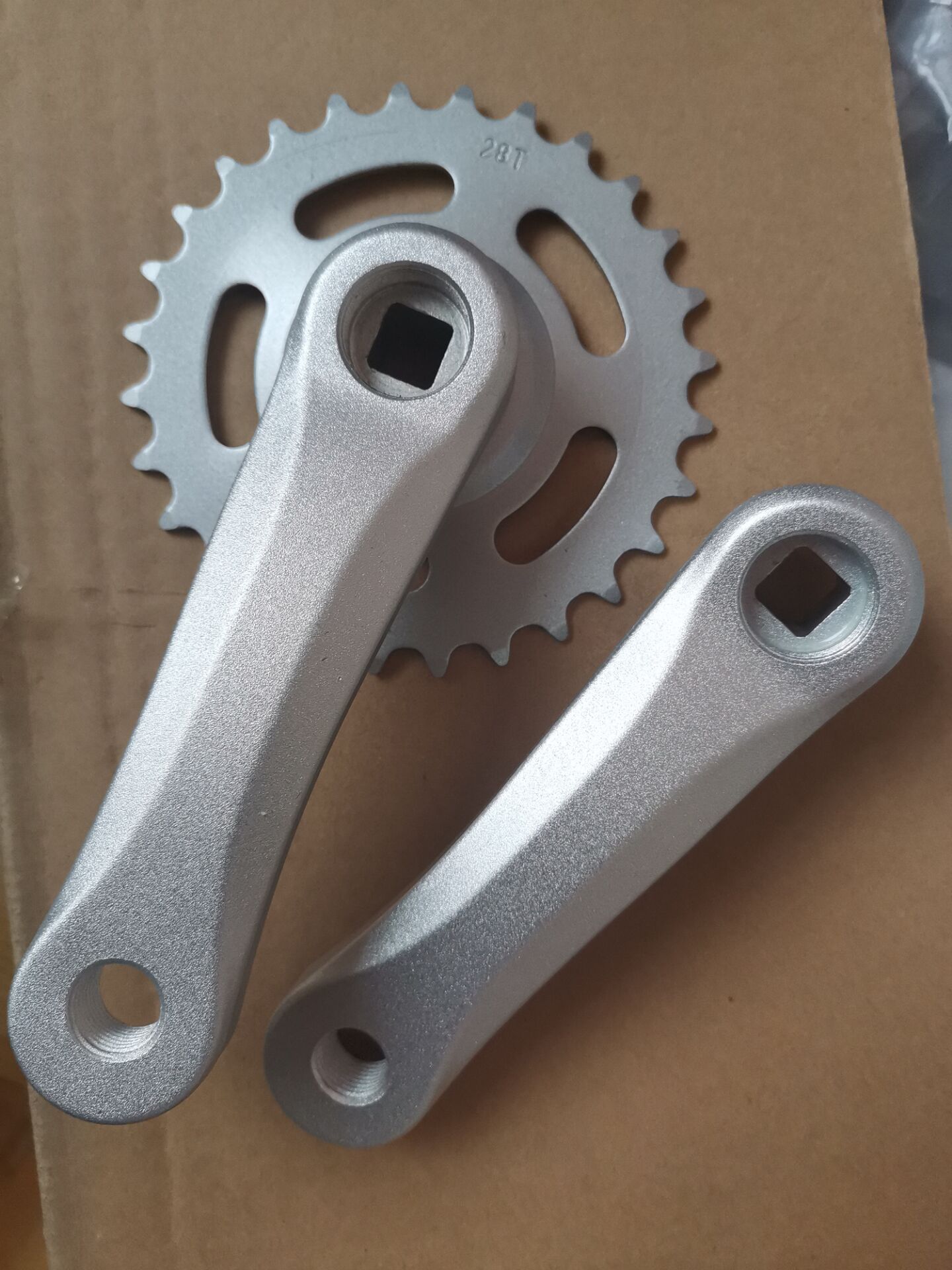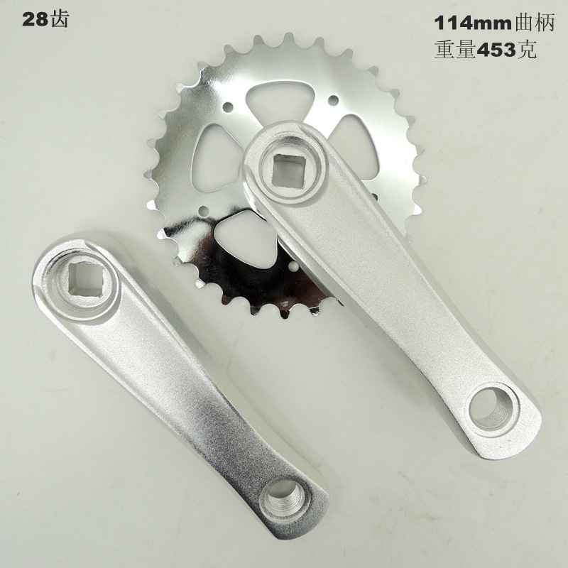 28齿牙盘 曲柄长度114mm 斜方孔 单速镀光齿盘 铝合金磨砂曲柄重量 453克