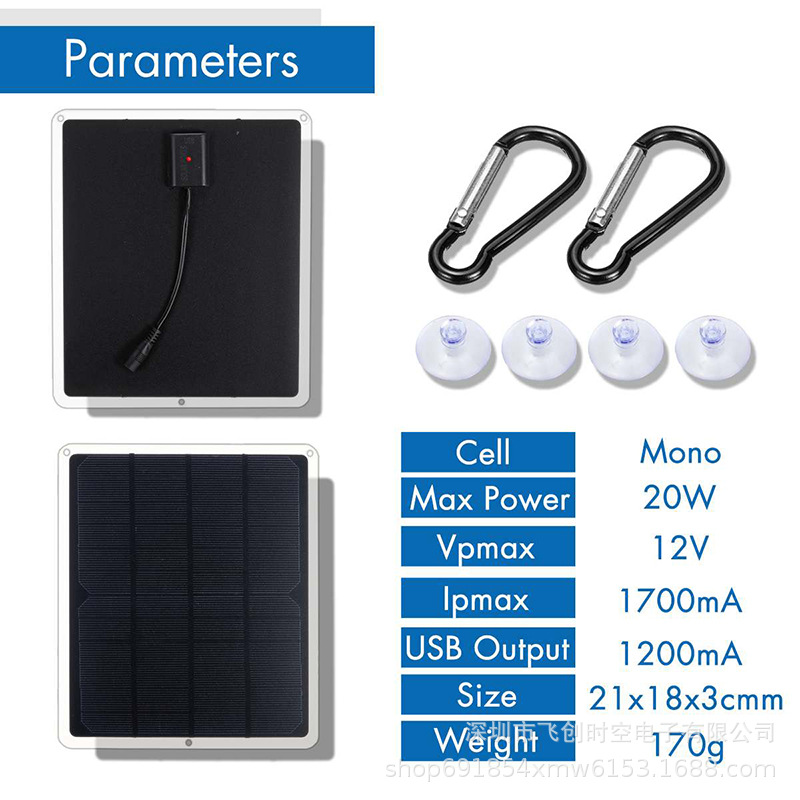 20W便携式太阳能电池板防水USB单晶硅太阳能电池板用于户外露营