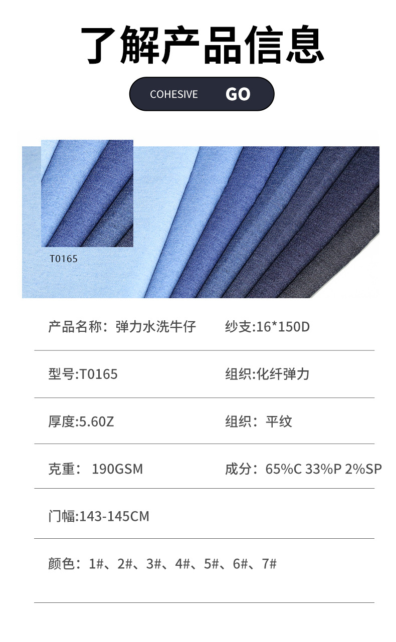 T0165 спот 16 * 150D эластичная промывка джинсовая ткань 6oz тонкая сумка, обувь, шляпа, одежда, джинсовая ткань
