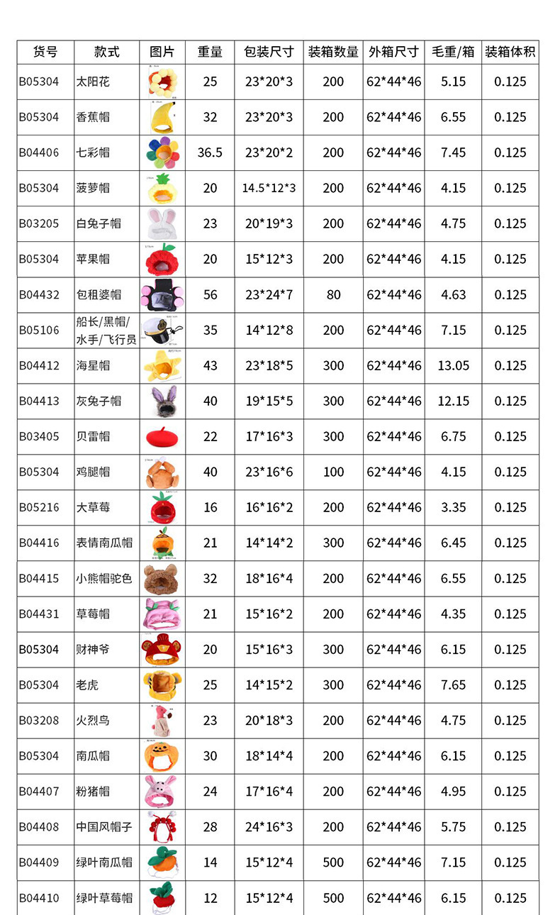 B04432 шляпа; Шапка для куриных ножек B05304; Шляпа морской звезды B04412; Банановая шляпа B03207; Ананасовая шапка B05304; Яблочная шапка B05304; Бог богатства B05304; Белая шляпа кролика B03205; Тигр B05304; Маленький ангел B05304; Подсолнух B05304; Тыквенная шляпа B05304; Шапка свинка Т B04407; Шляпа в китайском стиле B04408; Зеленая листовая тыквенная шляпа B04409; Зеленая листовая клубничная шляпа B04410; Серая шляпа кролика B04413; Красочная шапка B04406; Корона шляпа B07403-S; Полосатый колпачок B04405 Т; B02305 красный обруч для волос; Большая клубника B05216; Черная шляпа B05106; Моряк B05106; Капитан B05106; Пилот B05106; Шляпа пива B04306; Выражение тыквы шляпа B04416; Шляпа ежа B04417; Кролик шляпа B03301; B04415 _ Фруктовый белый; B04415 _ черный; B04415 _ желтый; TB04411_Краб; B04401 _ Корова шапка; B04421; B14401; B34310; B04404 _ оранжевый; B04404 _ черный; B04403 _ Пиратская шляпа; B04424 персиковая шляпа; B03405 берет черный; B04425 зеленый; B04425 красный; B03405 берет красный; B03405 берет розовый; B05310 _ Цыпленок; B05310 _ Кролик шляпа; B05310 _ шляпа лягушки; B04437_S; B04437_M; B04437_L; B04433_Французская шляпа; B04309_Красный_Малый размер; B04309_Красный_Большой размер; B04309_Зеленый_Маленький; B04309_Зеленый_Большой; B04438_S; B04438_L