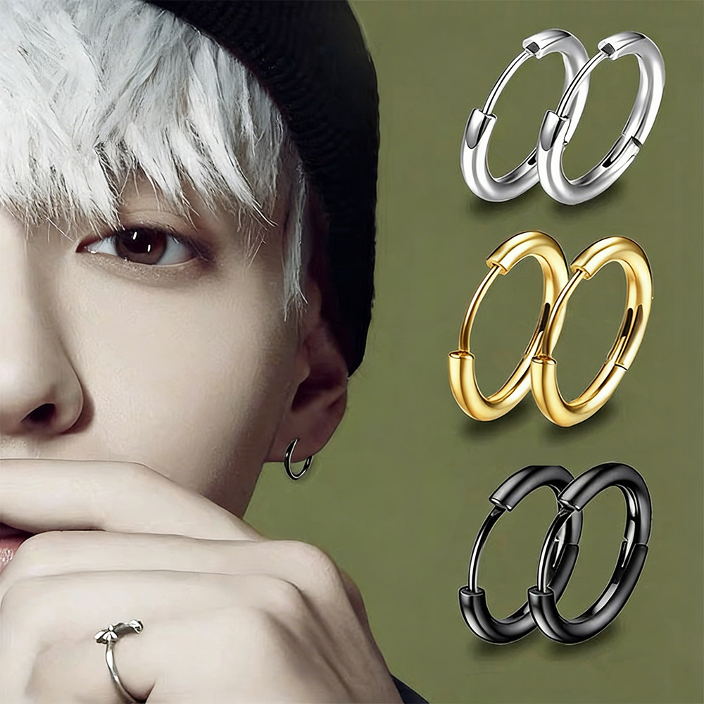 Серьги из титановой стали в корейском стиле, унисекс-кольца из нержавеющей стали, простые украшения, популярные круглые серьги, универсальные для повседневной носки.
