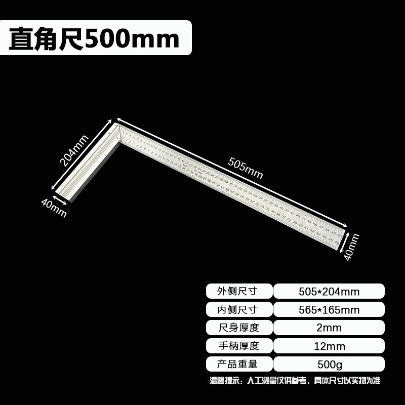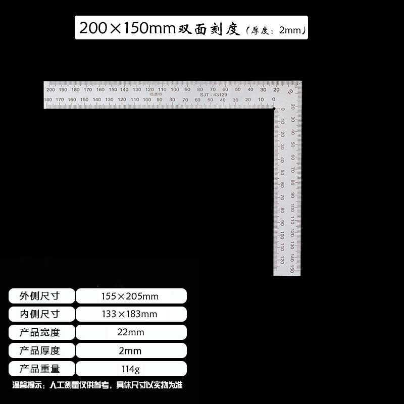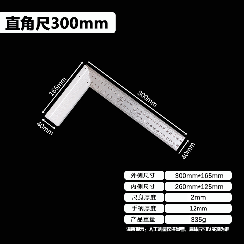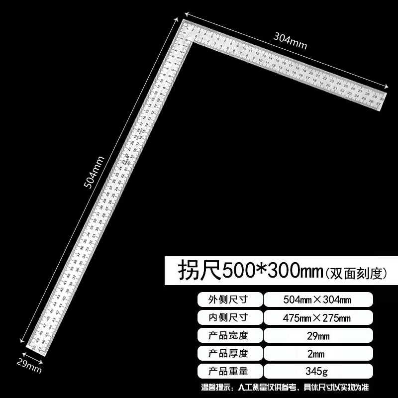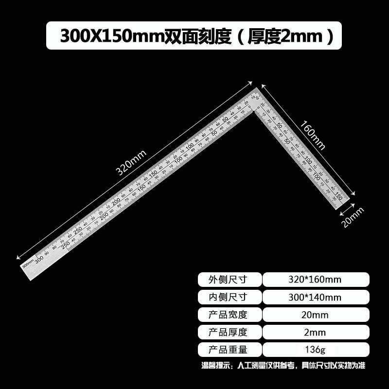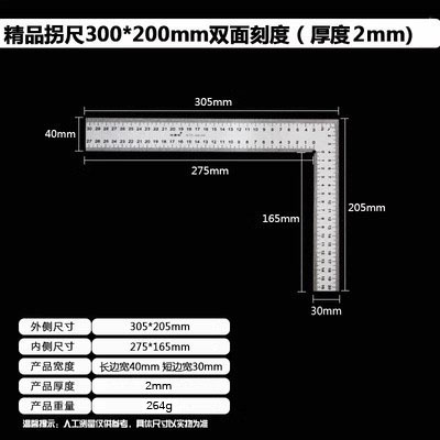 拐尺材质:2CR13不锈钢(磁铁可吸附)! 直角尺规格材质:2CR13不锈钢尺身+铝合金手柄