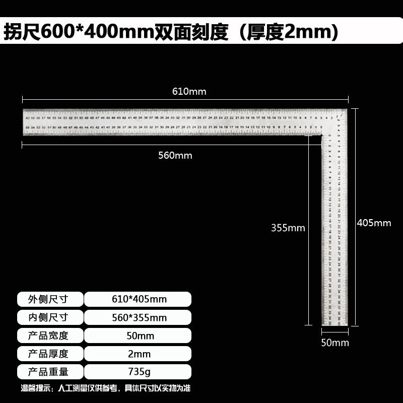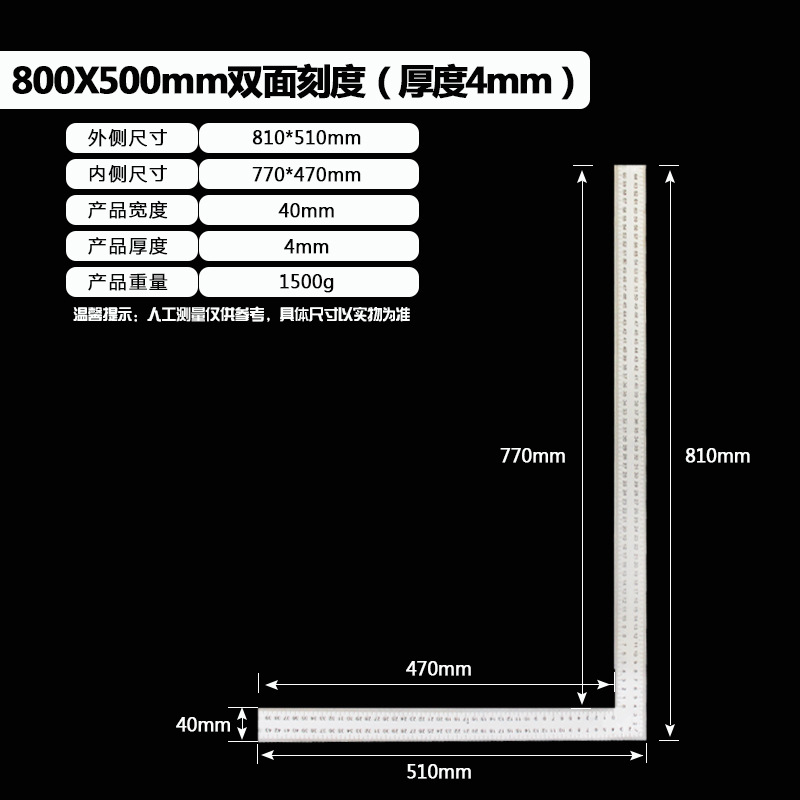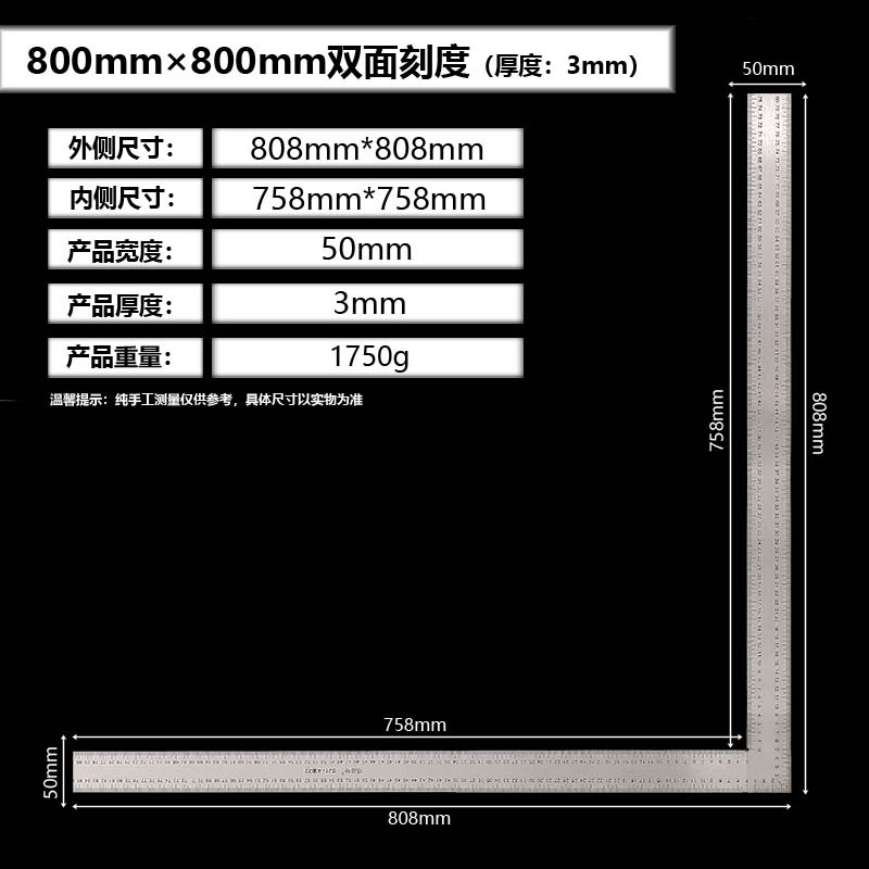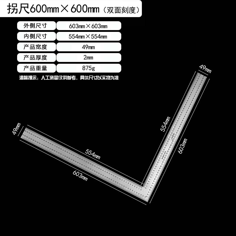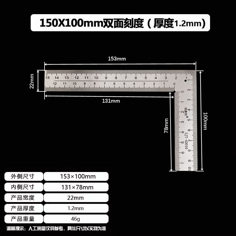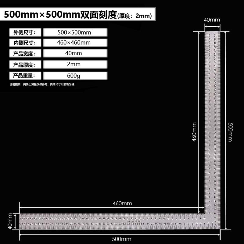 拐尺材质:2CR13不锈钢(磁铁可吸附)! 直角尺规格材质:2CR13不锈钢尺身+铝合金手柄