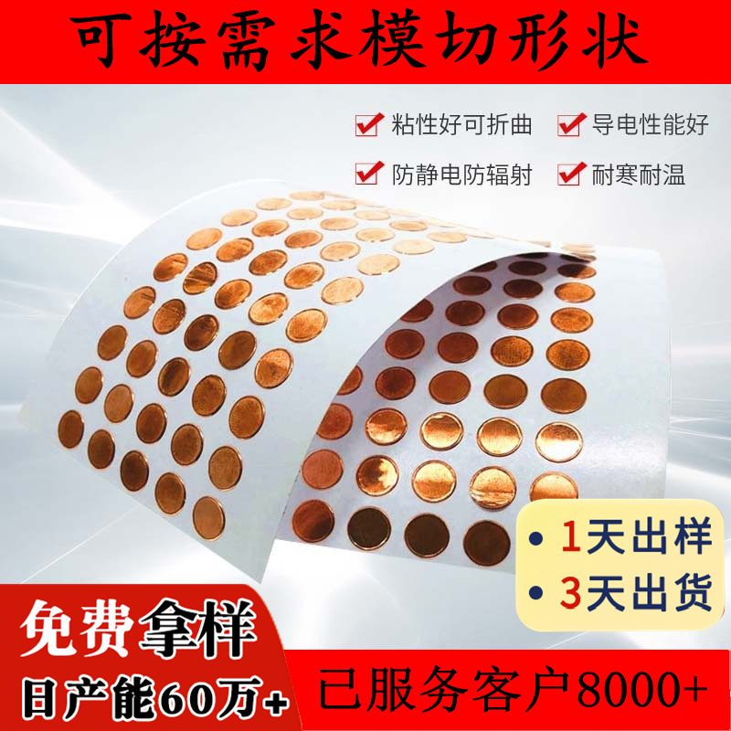 Круглая самоклеящаяся медная фольга, вырубленная по контуру, из алюминиевой фольги, с клеевым слоем, токопроводящая, двусторонняя, медная фольга-наклейка, производитель алюминиевых фольгированных наклеек, оптовая продажа, индивидуальный заказ