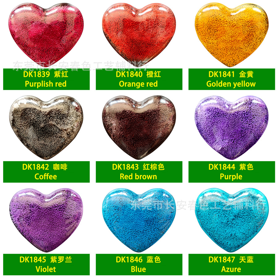 注:生产者最大的好处是可以把每一个颜色都经过反复的测试,测试他和环氧树脂的兼溶性。有些色精在环氧树脂里是会变色的,有些颜色是在环氧树脂中会形成分子聚结,凝结成很多的小颗粒并沉淀其中。在使用中达不到良好的效果。而我们解决了这些问题。