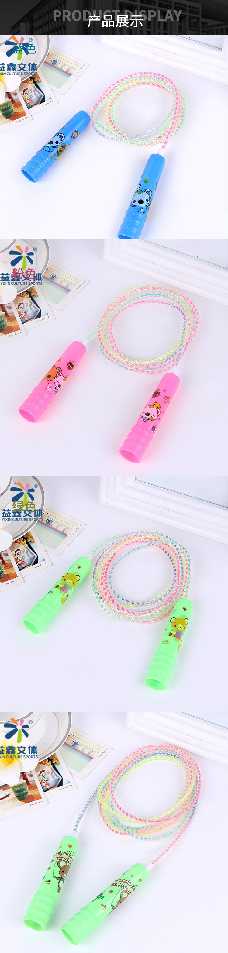 Yixin Завод прямых детских развлечений специальные скакалки мультфильм детский сад пластиковая ручка красочные скакалки