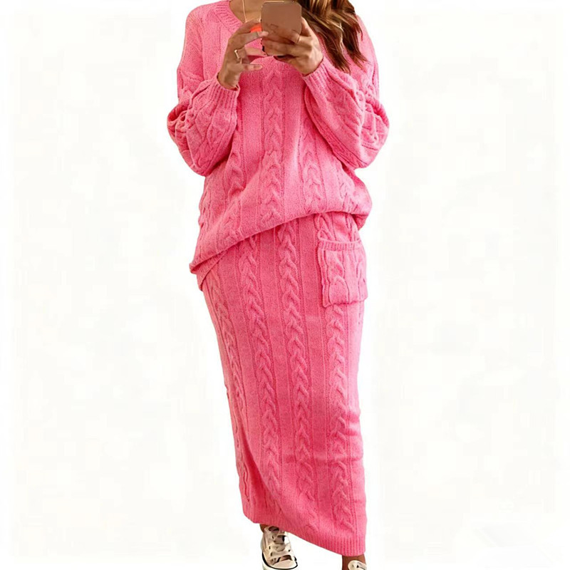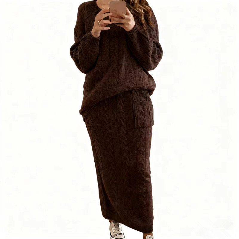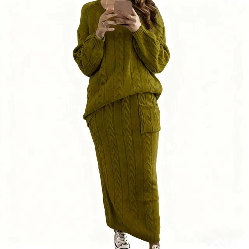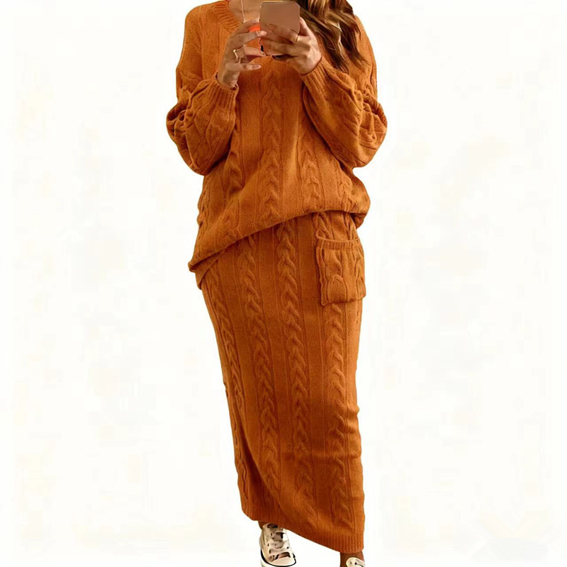 AliExpress осенне-зимняя новая женская одежда Amazon Wish Европейская и американская мода скрученный свитер костюм юбка в наличии