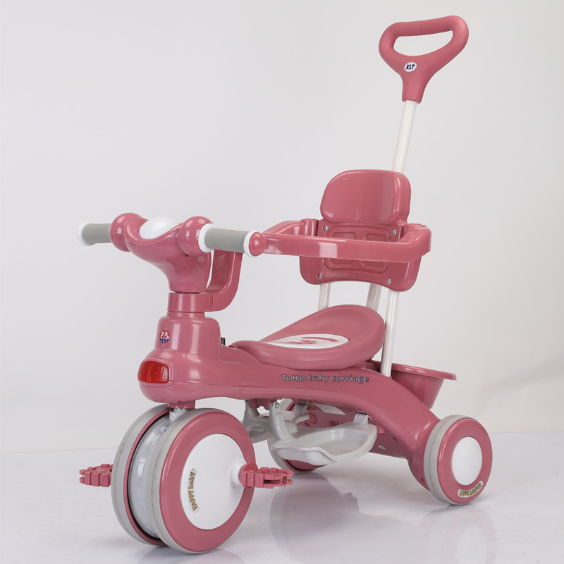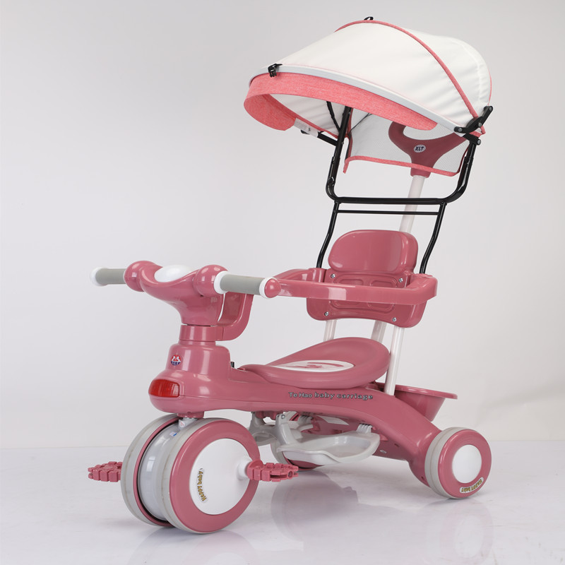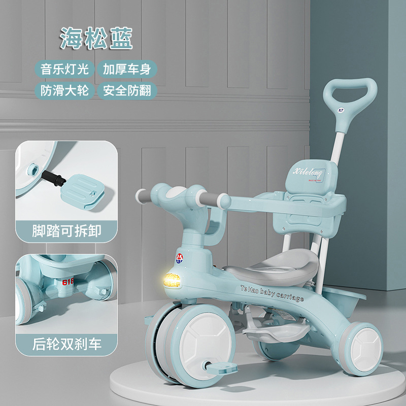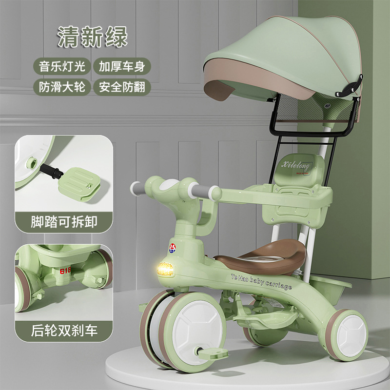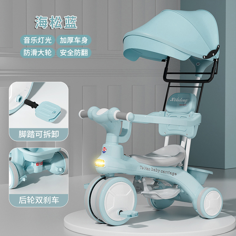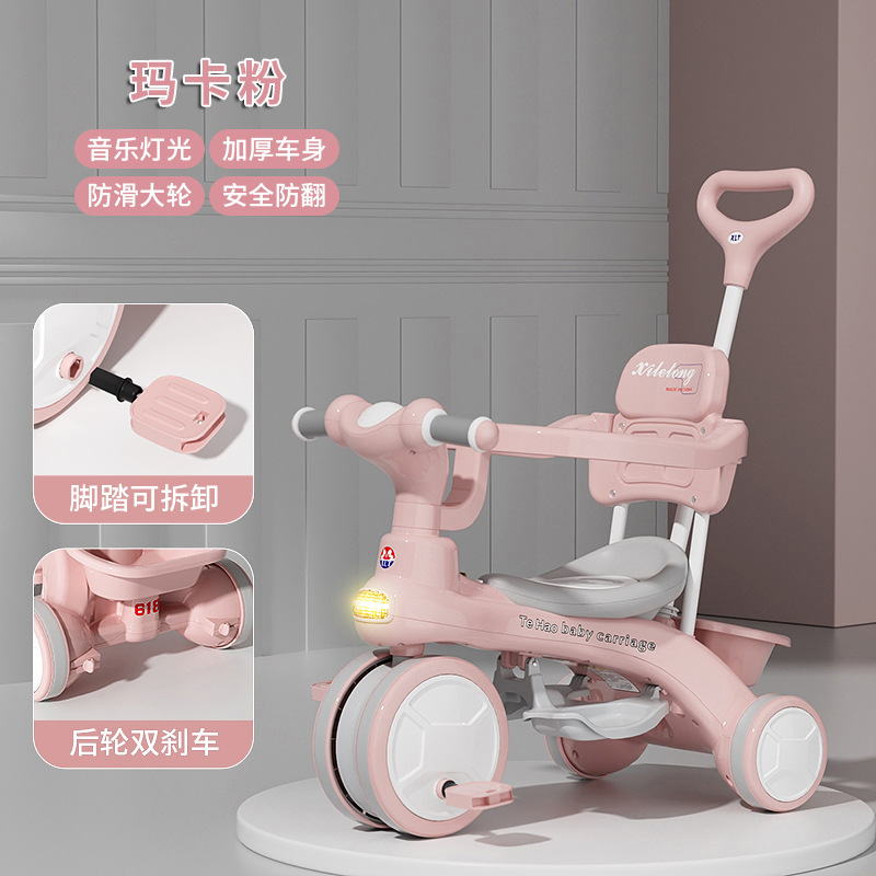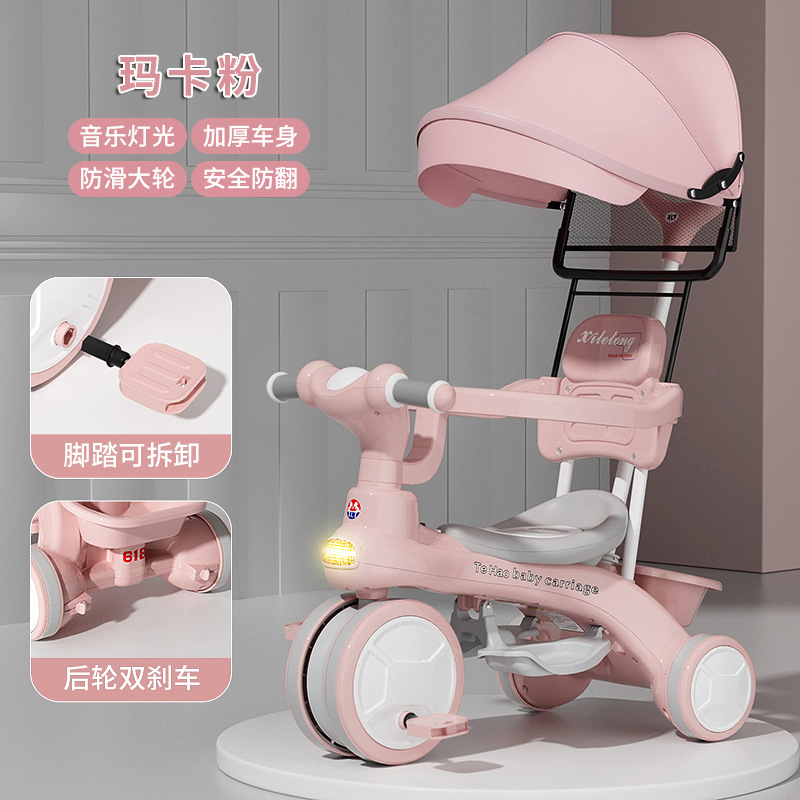 Детский трехколесный велосипед для детей от 1 до 6 лет, с возможностью толкания и катания, со светом и музыкой, коляска-трансформер