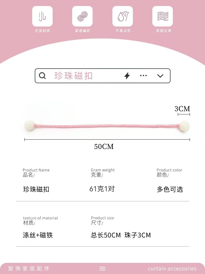 Оптовые магнитные держатели для штор без сверления с крупными жемчужинами, крепления для штор, аксессуары для штор