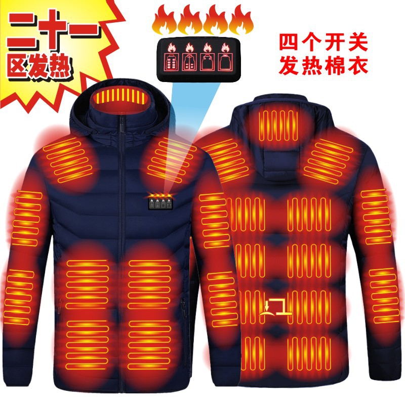 Хлопковое пальто с трансграничным подогревом, умный нагревательный костюм с капюшоном, уличный теплый электрический обогрев для пары, хлопковое пальто с постоянной температурой всего тела