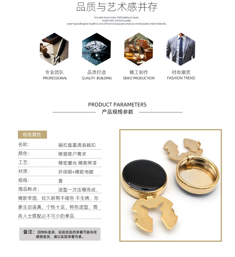 Летняя одежда крышка коробки выставка костюма подарочные запонки запонки медная пуговица украшения пуговицы декоративная пряжка