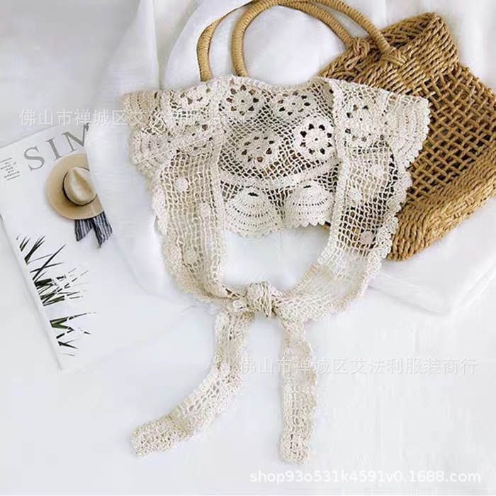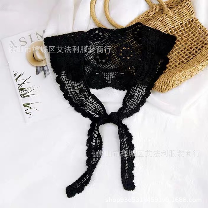 Летняя тонкая кружевная куртка с солнцезащитным кремом, полый Универсальный шелковый шарф с ложным воротником, Маленькая шаль, вязаный крючком, льняной треугольный шарф
