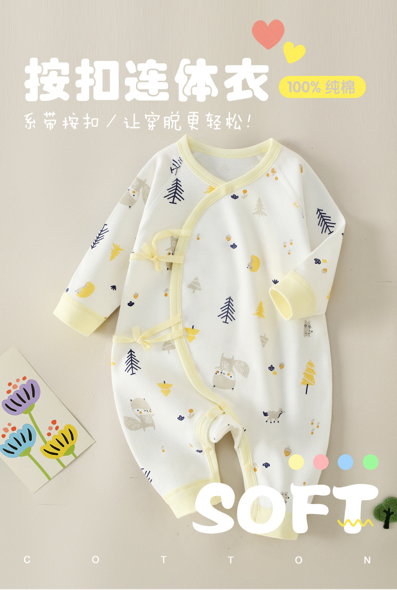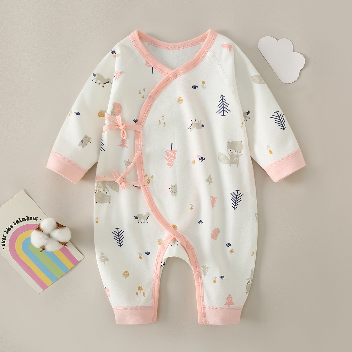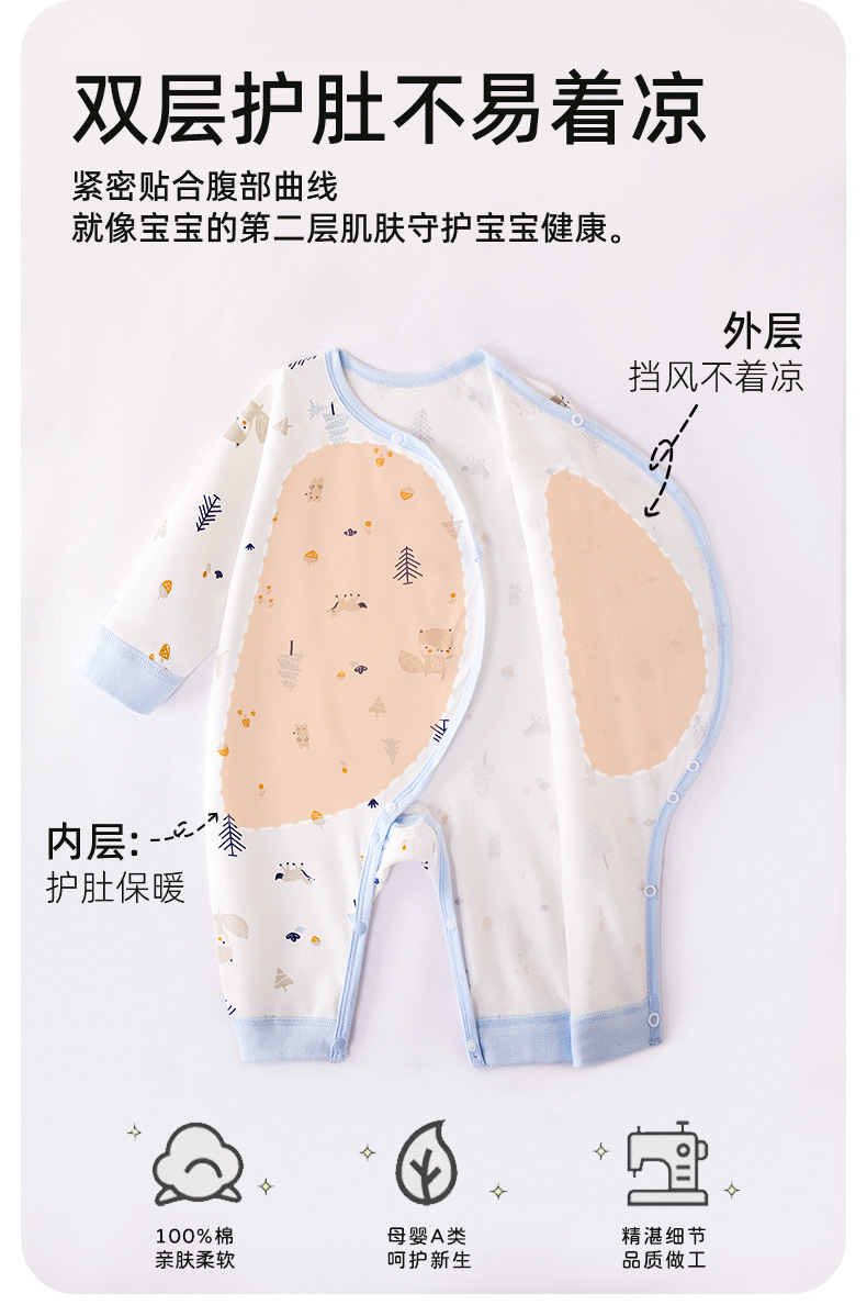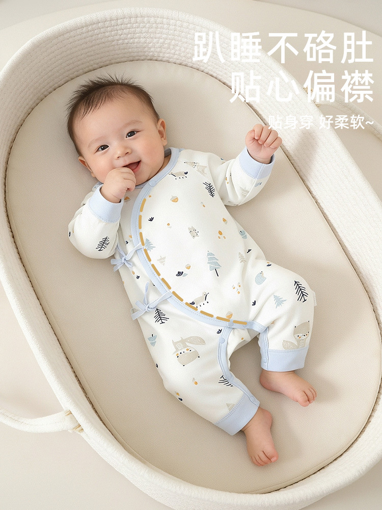 Весенне-осенняя детская одежда, комбинезон для новорожденных класса А, бесшовный базовый слой из чистого хлопка, унисекс-комбинезон для ползания.