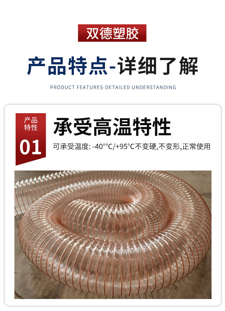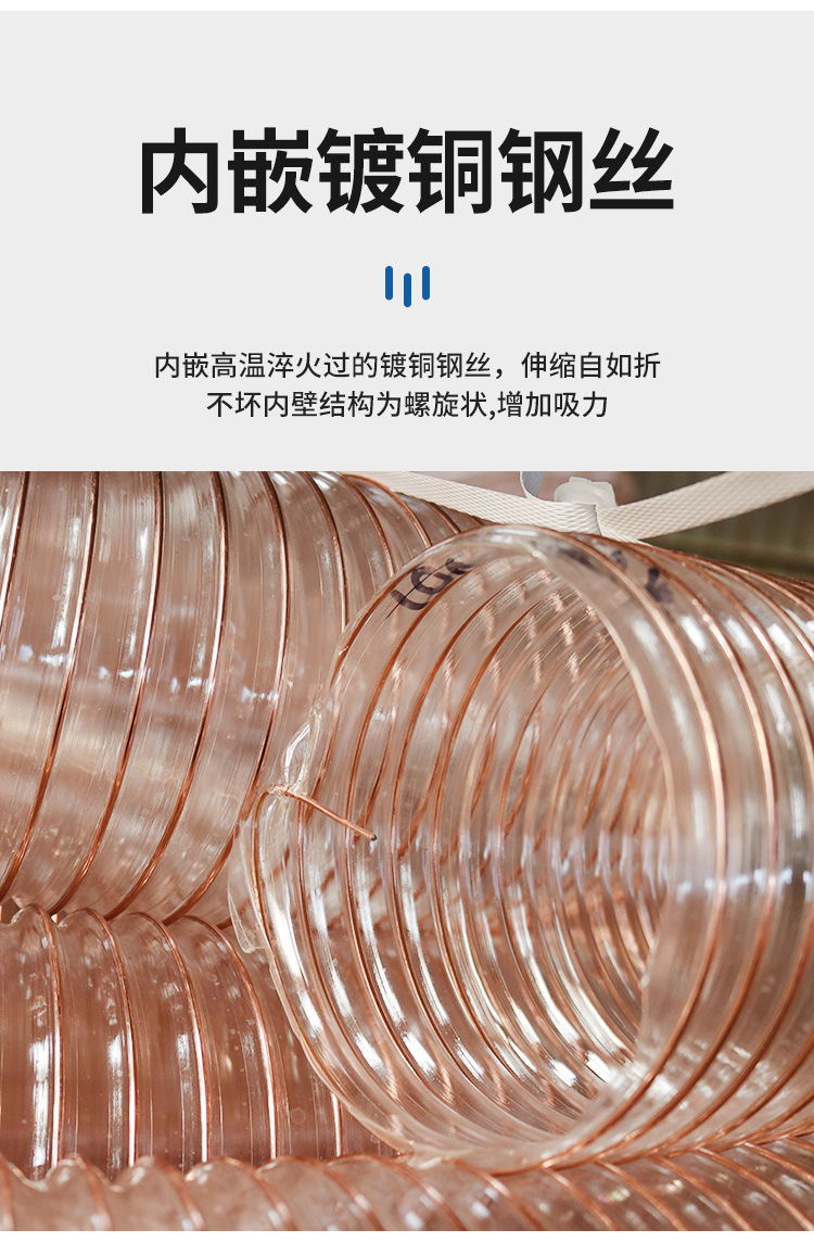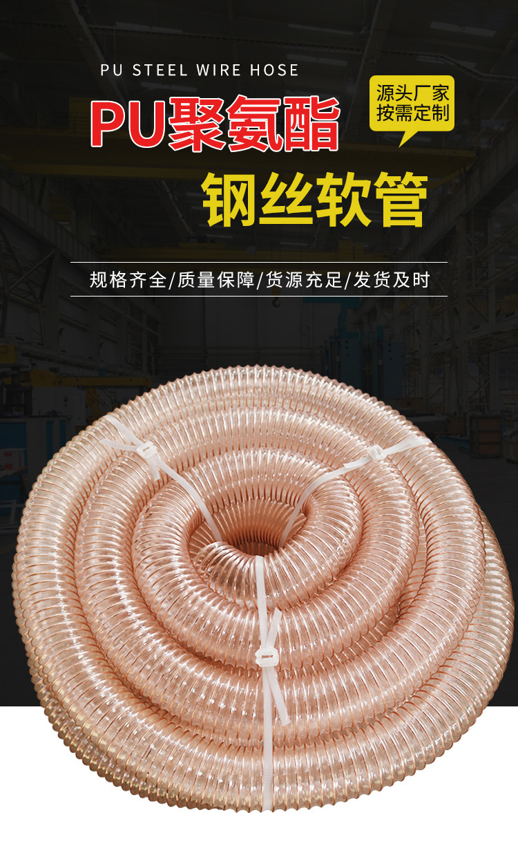 Пищевой прозрачный шланг из полиуретана со стальной оплеткой, армированный медным покрытием, для вытяжных систем, полиуретановой оплеткой и стальной проволокой для удаления пыли