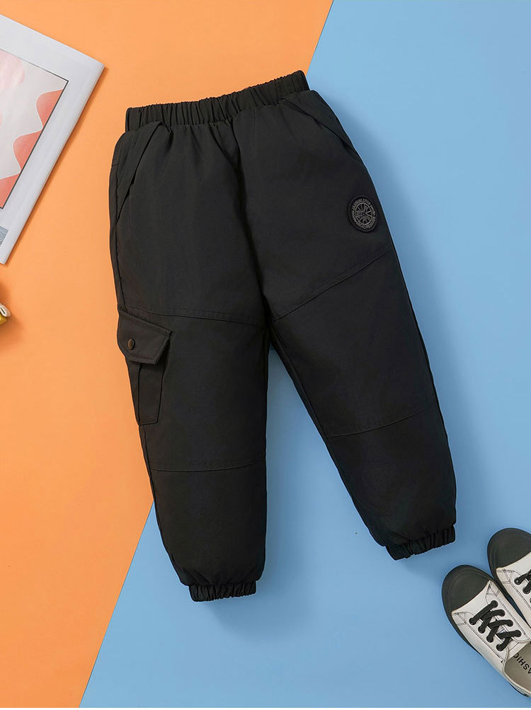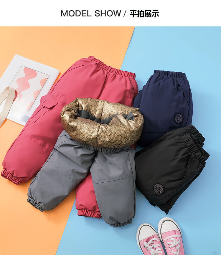 Детские пуховые брюки для мальчиков снаружи носить зимний толстый ребенок средний ребенок девочка большой гусь черный золотой значок брюки