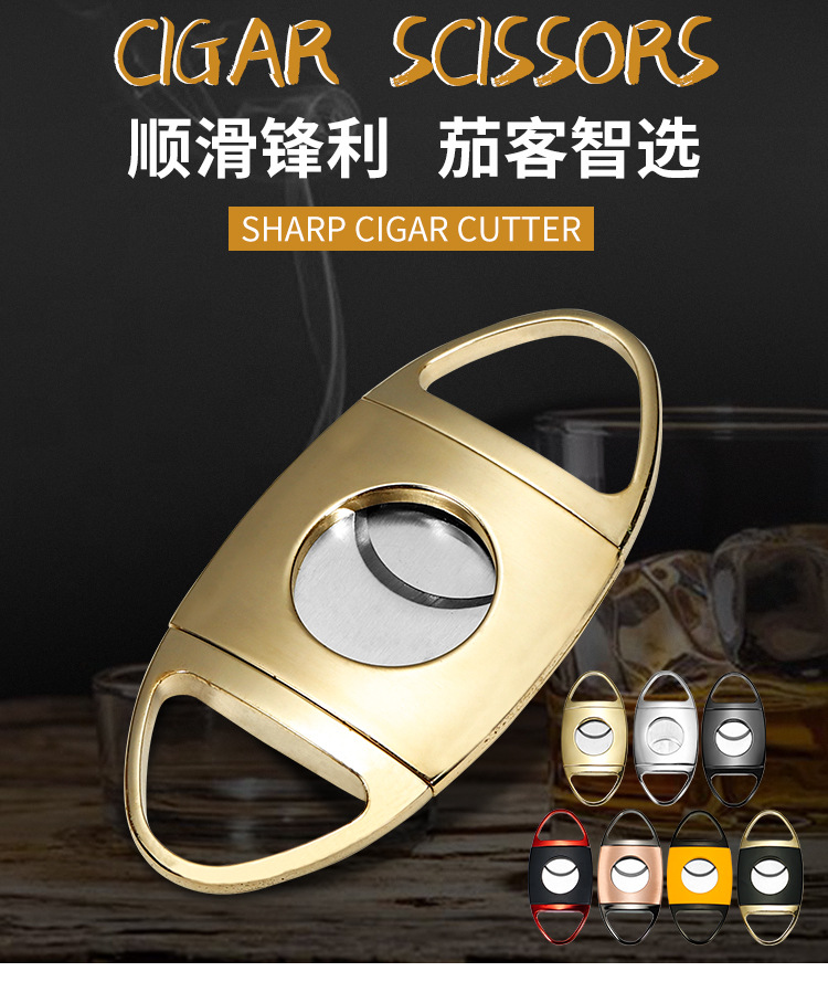 Прямые поставки с фабрики Ножницы для европейских и американских сигар Позолоченные ножницы для сигар из нержавеющей стали обоюдоострые V-образные ножницы для сигар