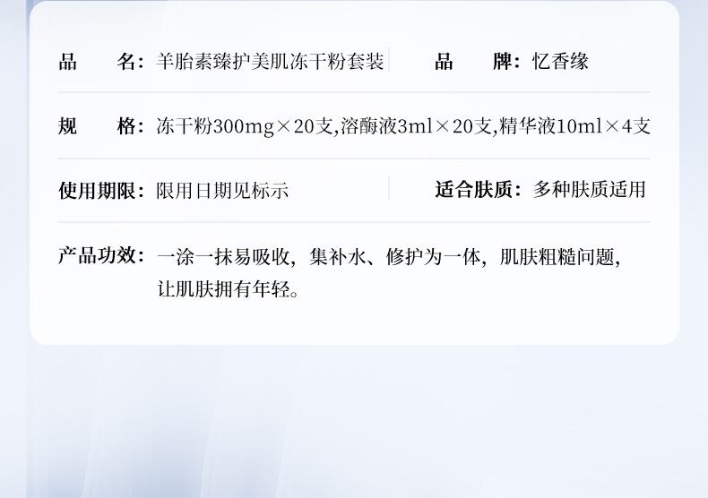 Воспоминания о Xiangyuan овец плаценты увлажняющий лиофилизированный порошок костюм 300 mgx20 + 3mlx20 + 10mlx4 ("не с сумочкой")