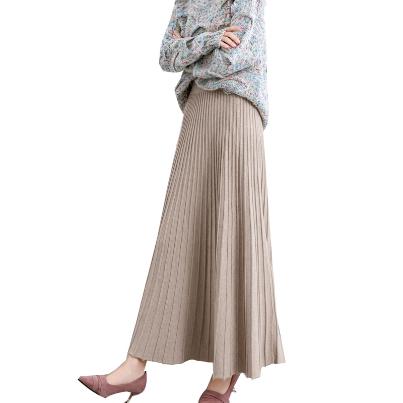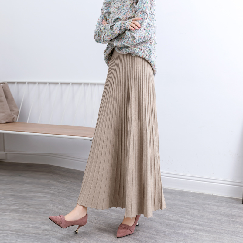 2021 Шерстяная юбка Удлиненная большая качающаяся вязаная юбка до щиколотки с высокой талией Тонкая юбка-зонтик больших размеров Зима