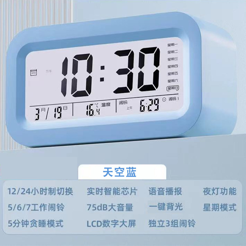 学生充电闹钟 三组闹铃音乐铃声语音报时钟 创意静音贪睡电子闹钟