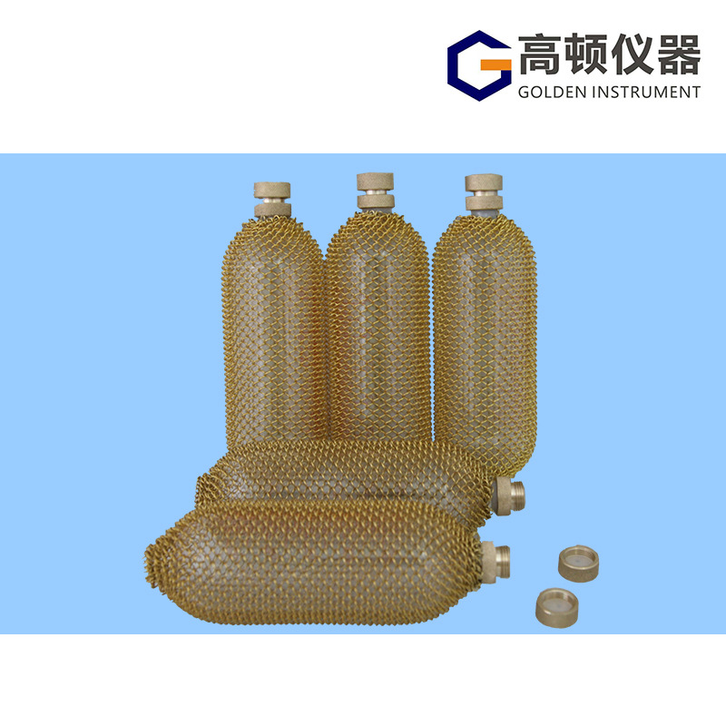 玻璃耐压取样瓶使用95#或G-17厚壁玻璃料做瓶体,瓶口配以金属接口;瓶体外加装金属(黄铜、不锈钢、铜网)或尼龙保护罩。