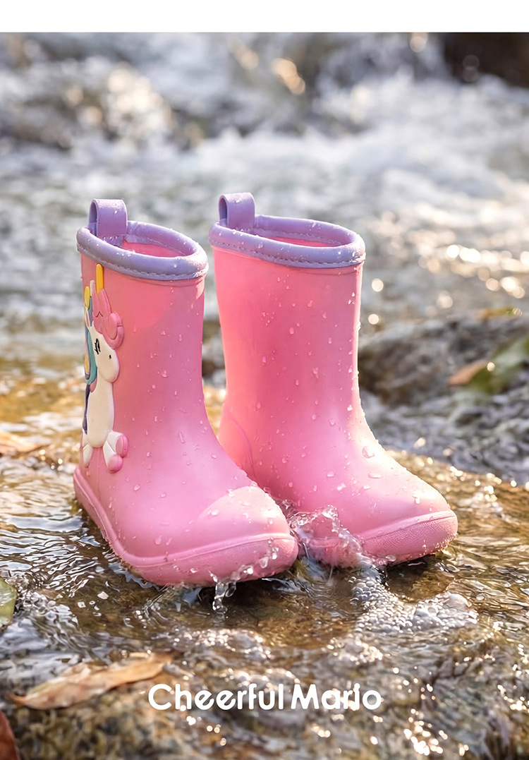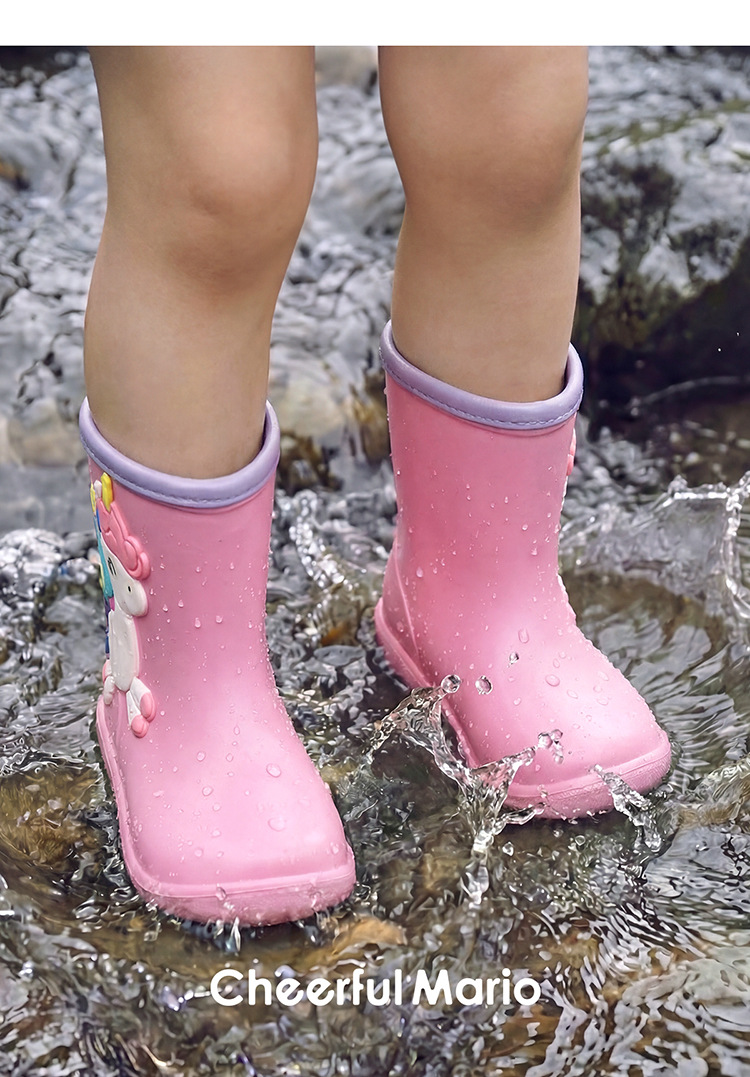 Детские резиновые сапоги Happy Mary с мультяшным дизайном для мальчиков и девочек, водонепроницаемые, для школьников, обувь для воды, сапоги от дождя
