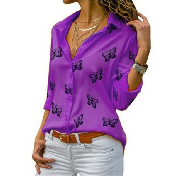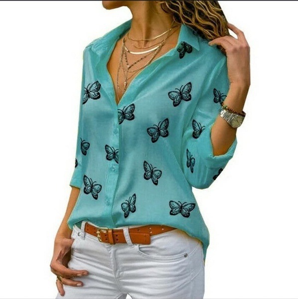 2020 Amazon Wish AliExpress многоцветная рубашка с принтом бабочек и свободными лацканами для женщин