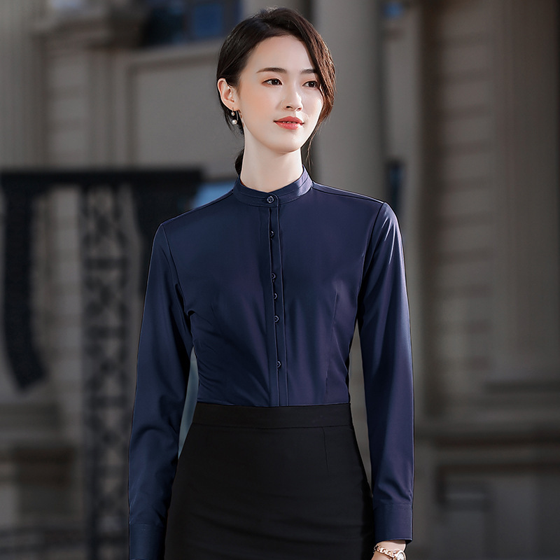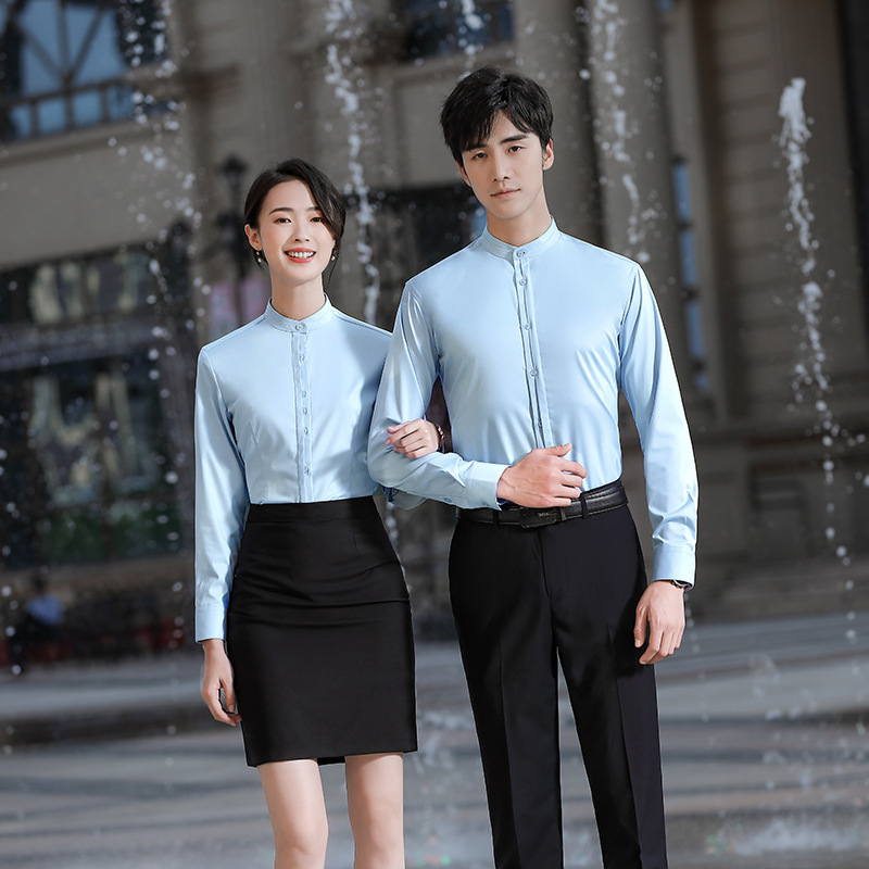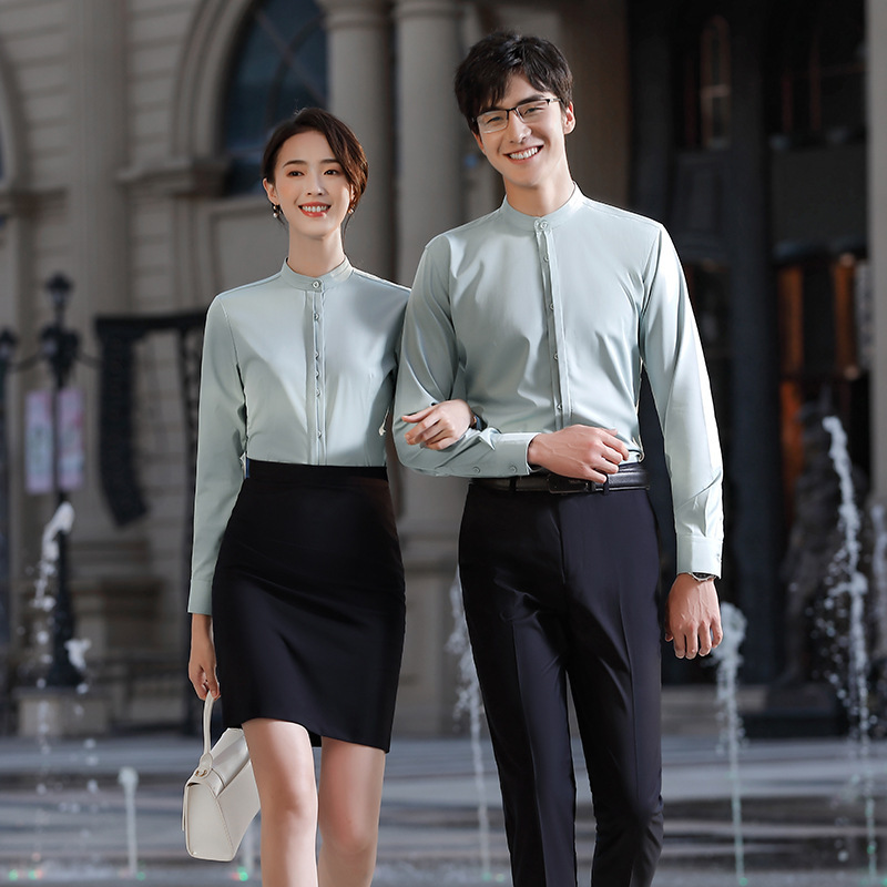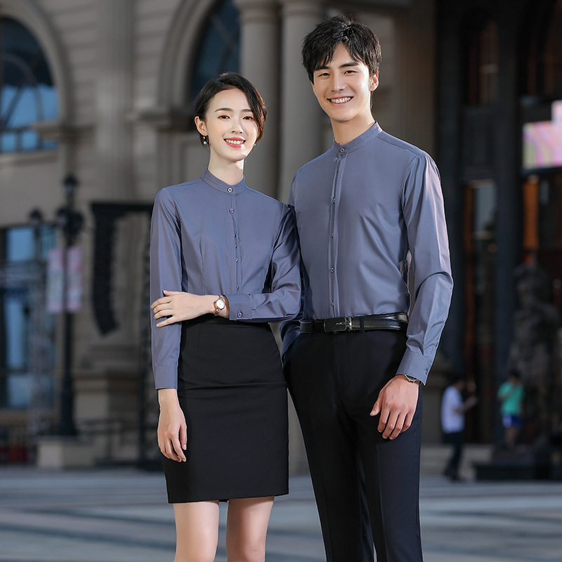 Новый Стиль прямой воротник китайский стиль тот же стиль Деловое платье рубашка костюм Тан воротник с длинным рукавом рабочая одежда платье с вышитым логотипом