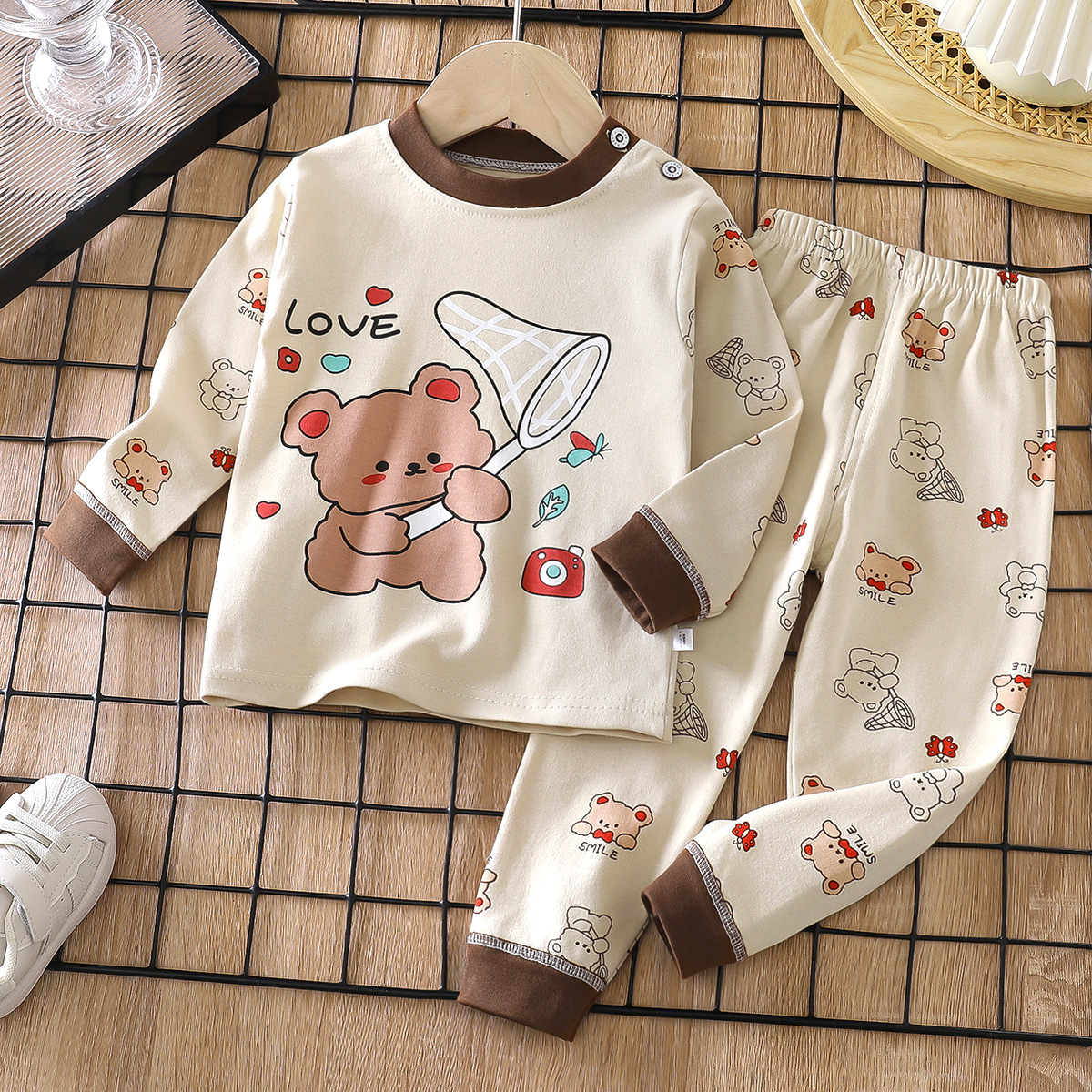 Новинка 2023 года, детская осенняя одежда из чистого хлопка, осенние штаны, нижнее белье, осенне-зимний весенний костюм, домашняя одежда, детская одежда для мальчиков и девочек, пижамы