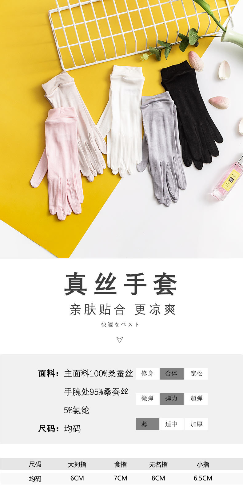 Шелковые вязаные шелковые перчатки Tangge Mulberry солнцезащитные увлажняющие белые спальные перчатки для женщин