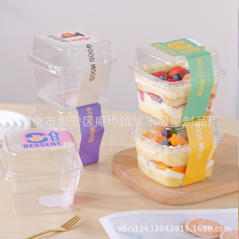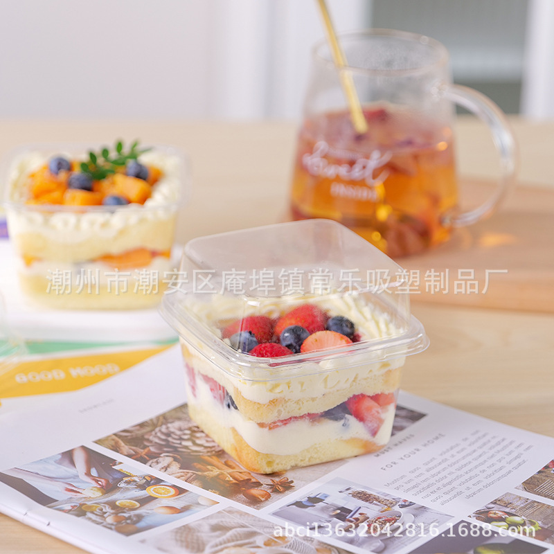 Квадратная коробка для Мусса деревянная фасоль молоко лазанья фруктовый йогурт прозрачный блистер противотуманная упаковка для выпечки кондитерских изделий