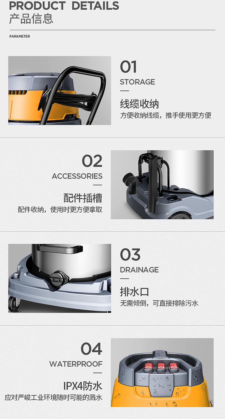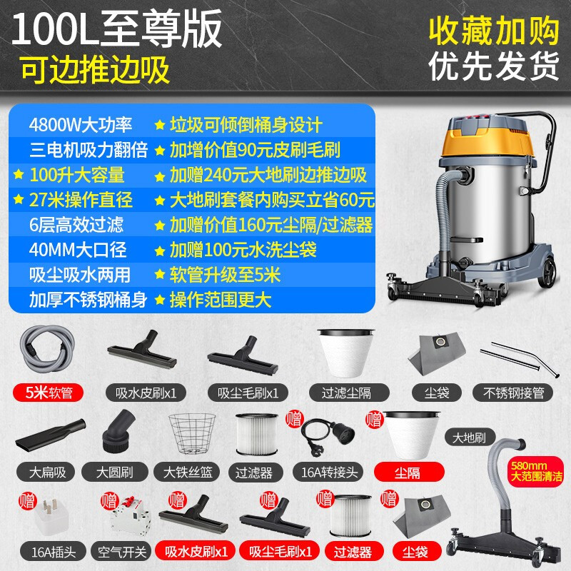 Пылесос Chigo с высокой мощностью всасывания, промышленный пылесос-бак для сухой и влажной уборки, для мастерских, коммерческого и промышленного использования, высокой мощности.